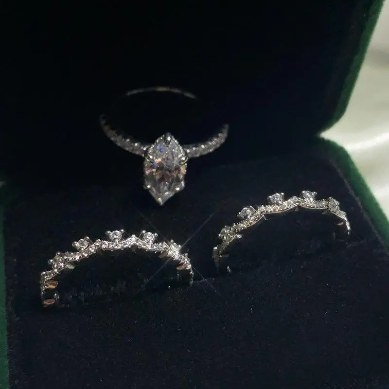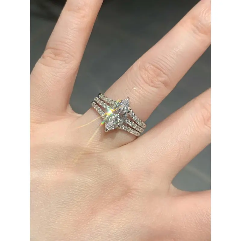 Material: S925 Sterling Silver/ 8A Cubic Zirconia Main Stone type:6*12mm Ring Size: 5/6/7/8/9 We use high-grade zircon, compare to the low-grade zircon, the high grade zircon has higher dispersion, so the refractive index is stronger, so it is more shiny. And it has higher density, so it is more solid and wear resistant. And our high grade zircon products has great fire color.