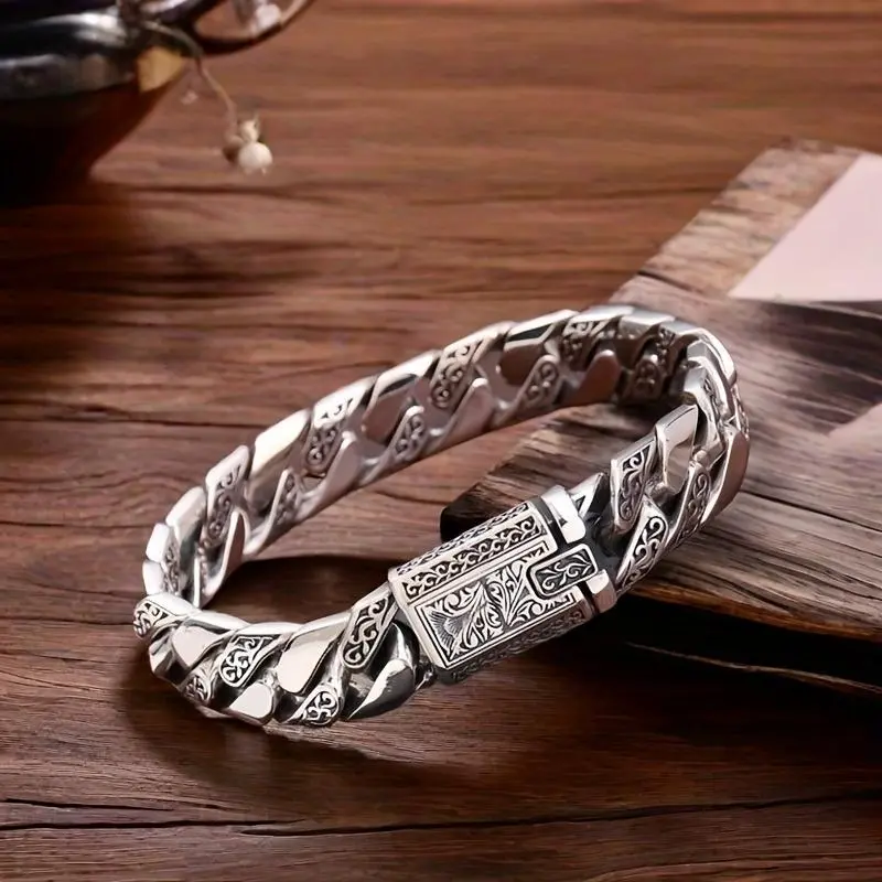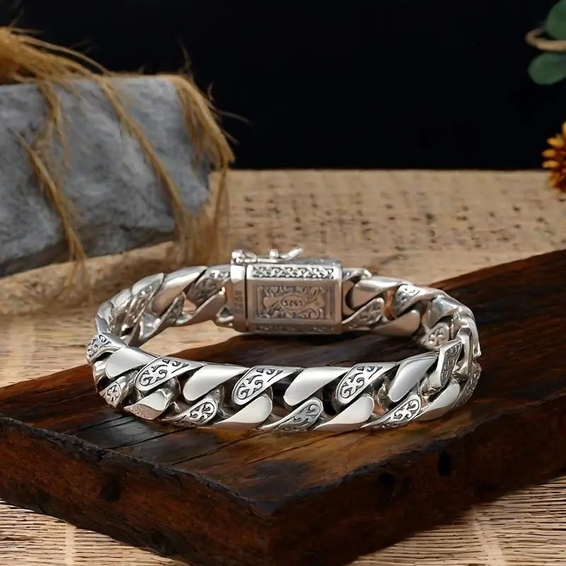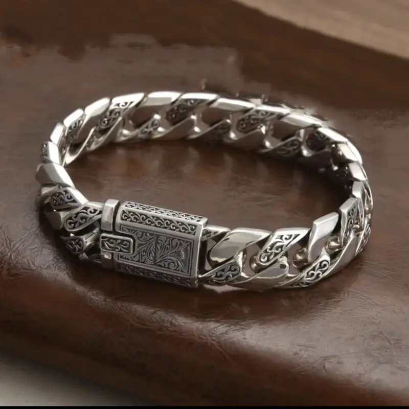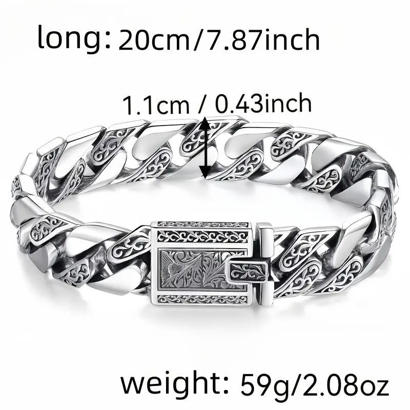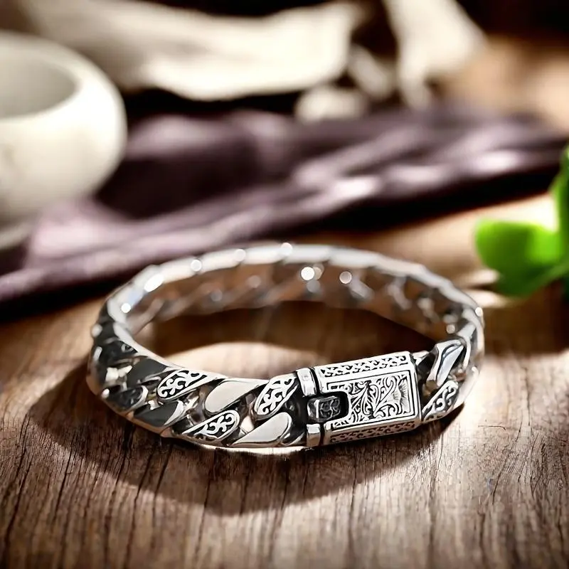 Silver S925 bracelet, pure silver bracelet, men's bracelet can be opened and worn as an ideal holiday gift for boyfriends or fathers' birthdays