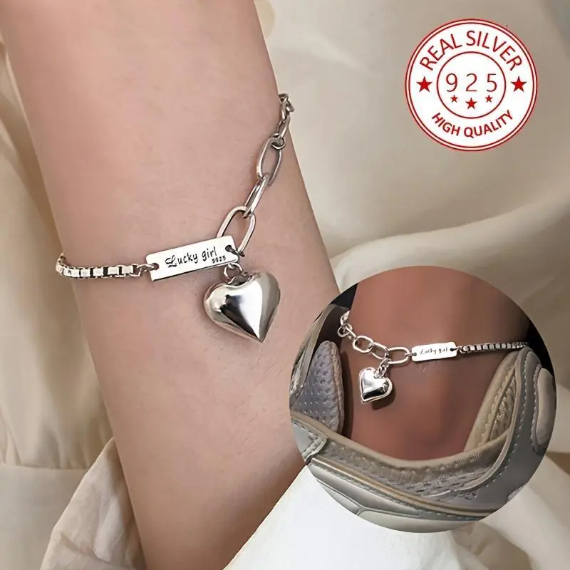 [2pcs 925 Silver Ankle Bracelet Set] 2pcs Elegant Boho Style 925 Sterling Silver Ankle Bracelet Set, Daily & Party Wear, All-Season Gift for Valentine'S Day