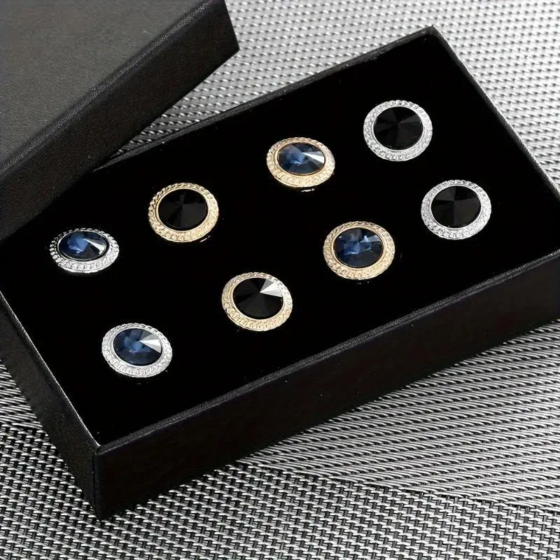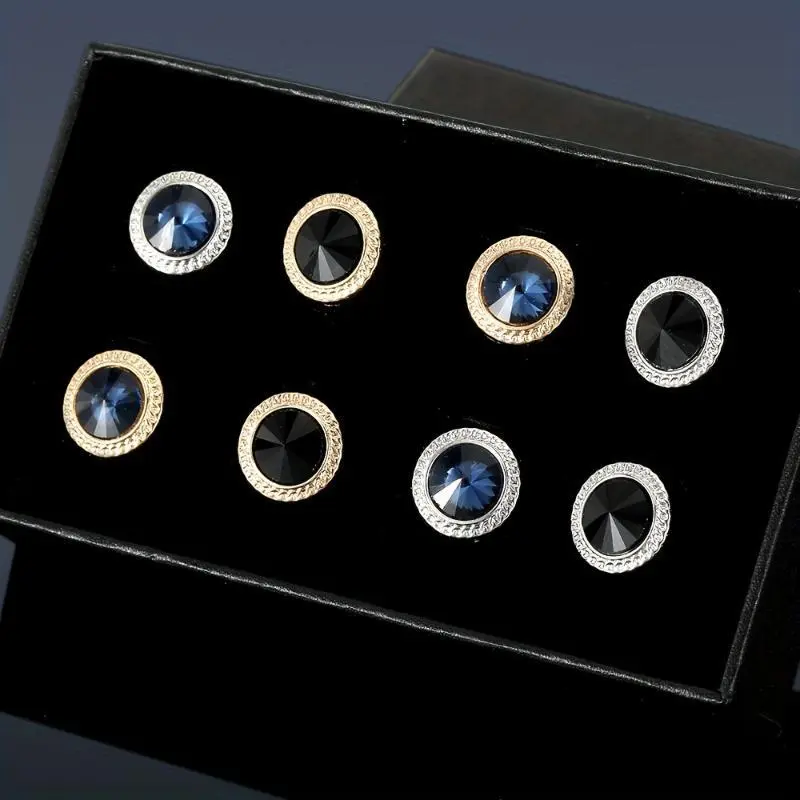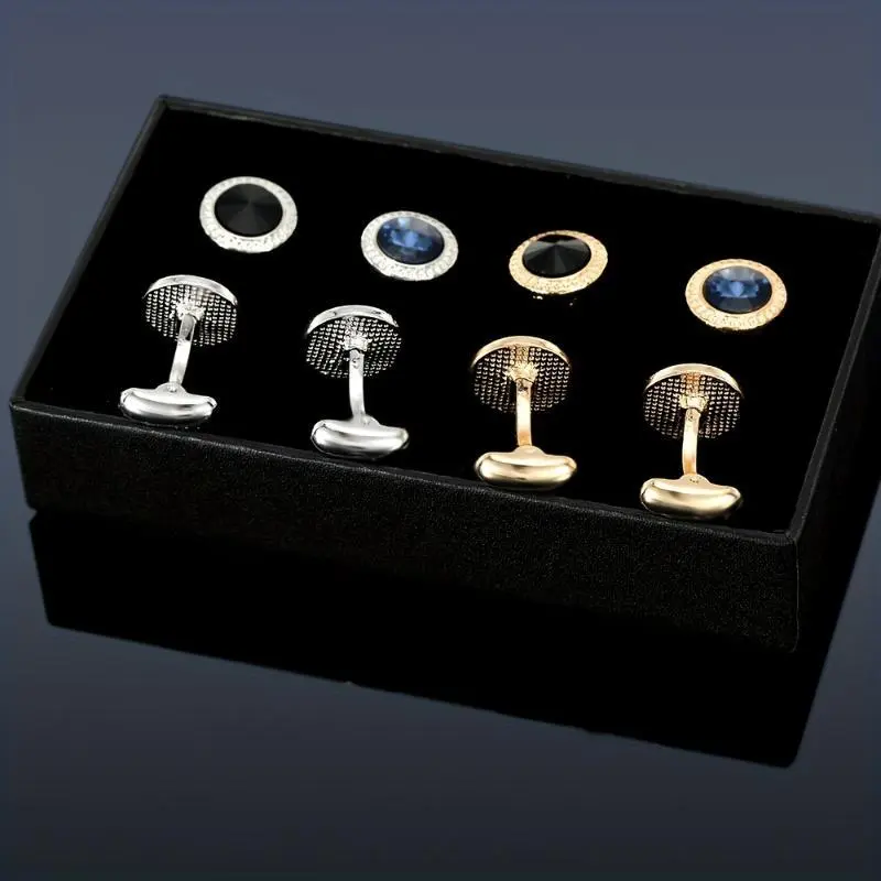Four pairs of cufflink gift box men's crystal cufflinks, sleeve studs made of alloy material dripping oil style cufflinks, sleeve studs for men's suits, shirtbuttons forFather'sDay gifts, wedding parties, meetings, formaldecorationsfor high