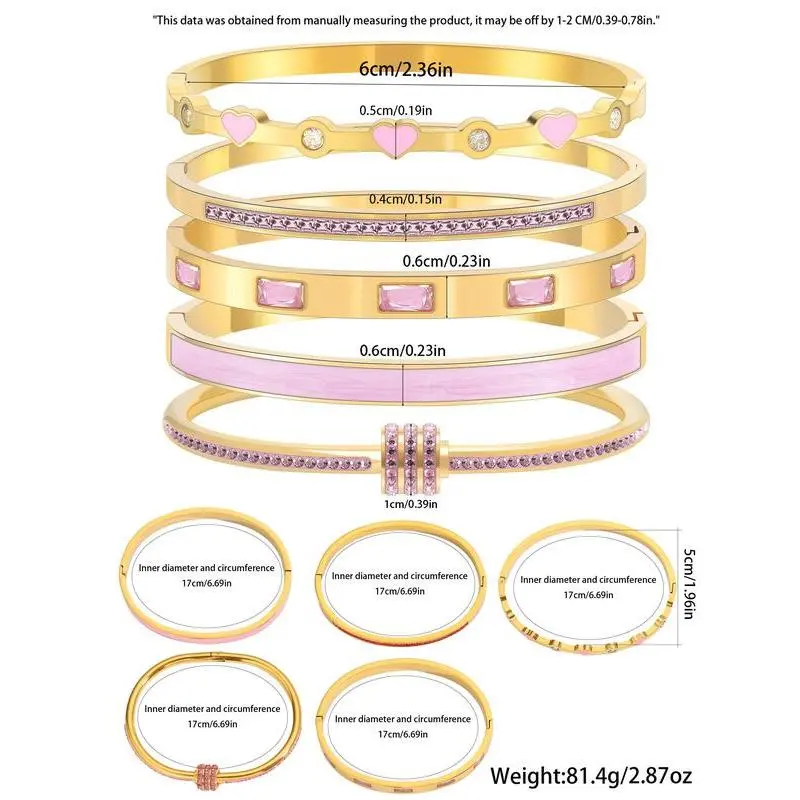 【Weightless Feel】: Crafted from lightweight stainless steel, these bangles provide a comfortable wearing experience without compromising style. 【Universal Appeal】: Designed for all seasons, this bracelet set is perfect for parties, gatherings, and as thoughtful birthday gifts. 【Quality Material】: Made of durable stainless steel, these bracelets ensure long-lasting wear and resistance to tarnishing over time. 【Safety First】: This product does not contain choking hazards, ensuring a safe choice for wearers of all ages during celebrations.