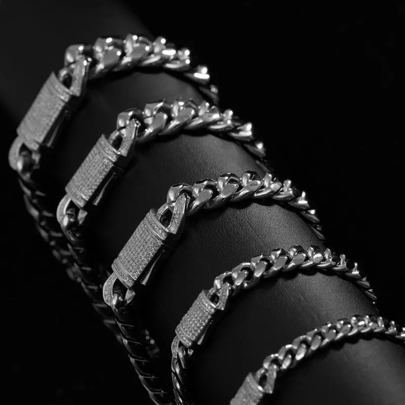 Material: "18K gold-plated+CZ" Style: "Hip-hop Cuban Bracelet" Main feature: "Flip lock" Length: "7.5-8.5 inches" Quality: "Heavy-duty Chain" Audience: "The gift for him"