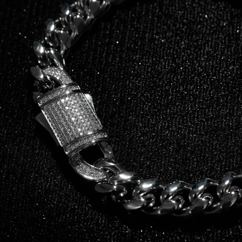 GLD Micro Diamond Prong Cuban Bracelet | 14k White Gold Plated - 6mm Width, 6" Length, CZ Stones, Adjustable Sizes 6" to 9", Guaranteed for Life