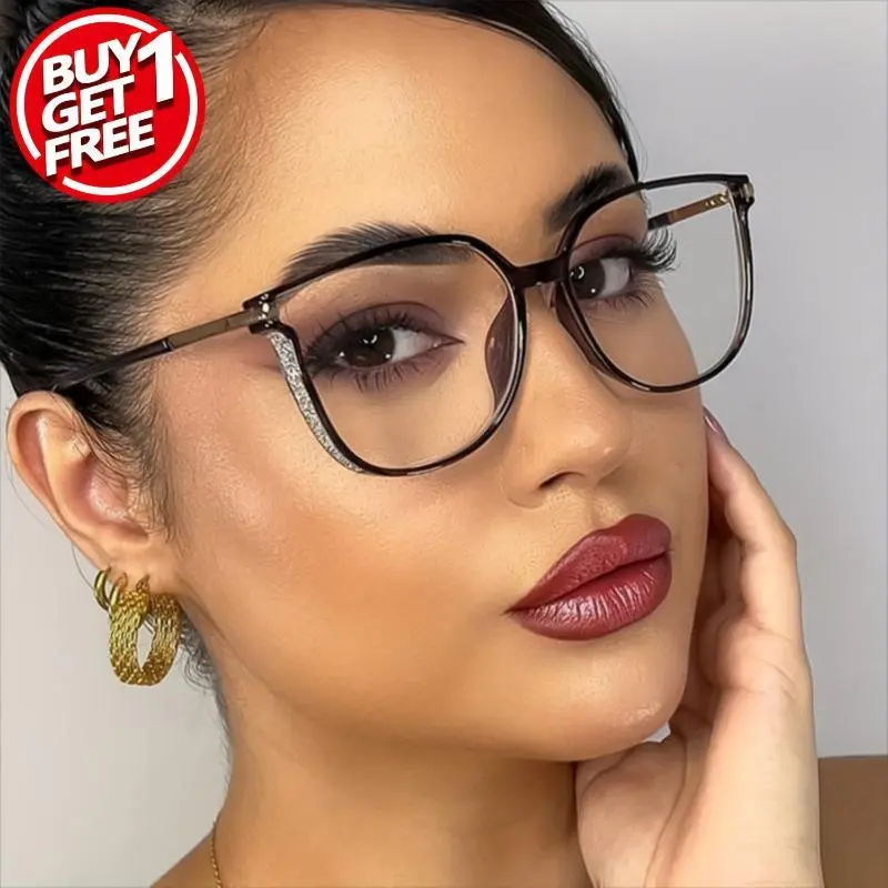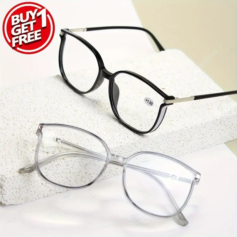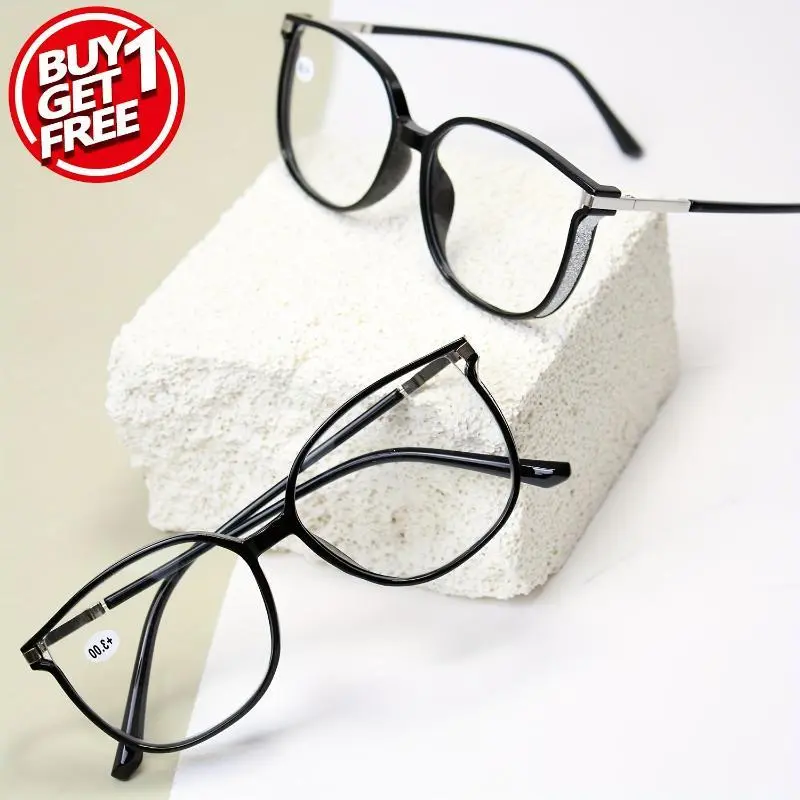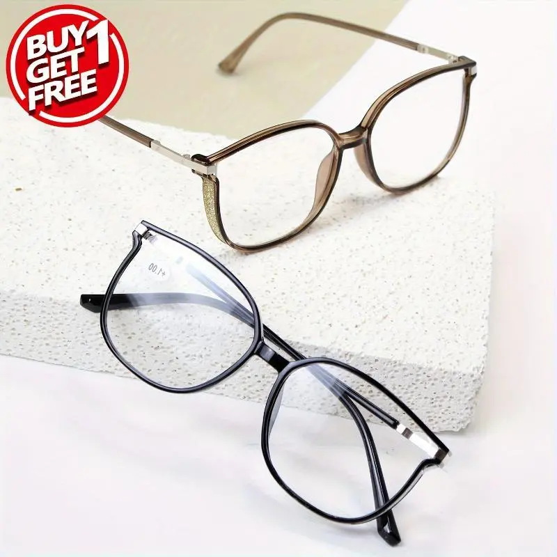 2pcs Large Square Reading Glasses Glitter Fashion Presbyopic Glasses Luxury Readers For Women Men +1.0 To +4.0 Eyeglasses Black+Black creative bracelet Hip Hop Costume Accessories Set bow charm necklace love hollow cute ring papa gift green leaf heart