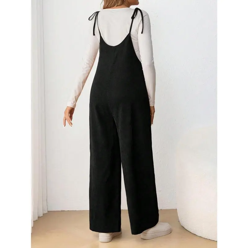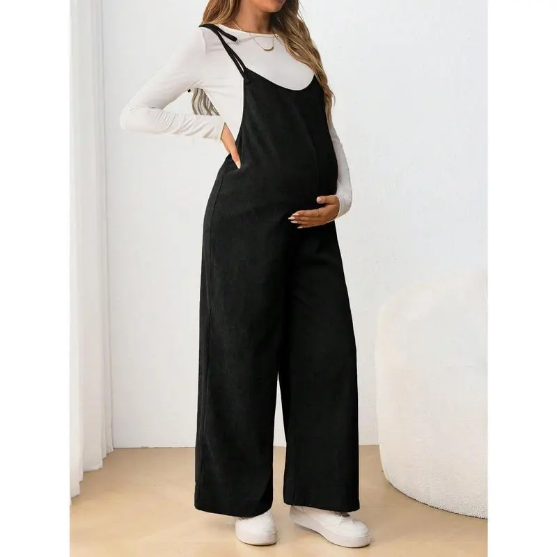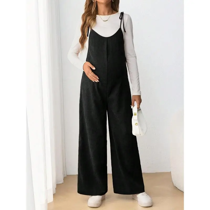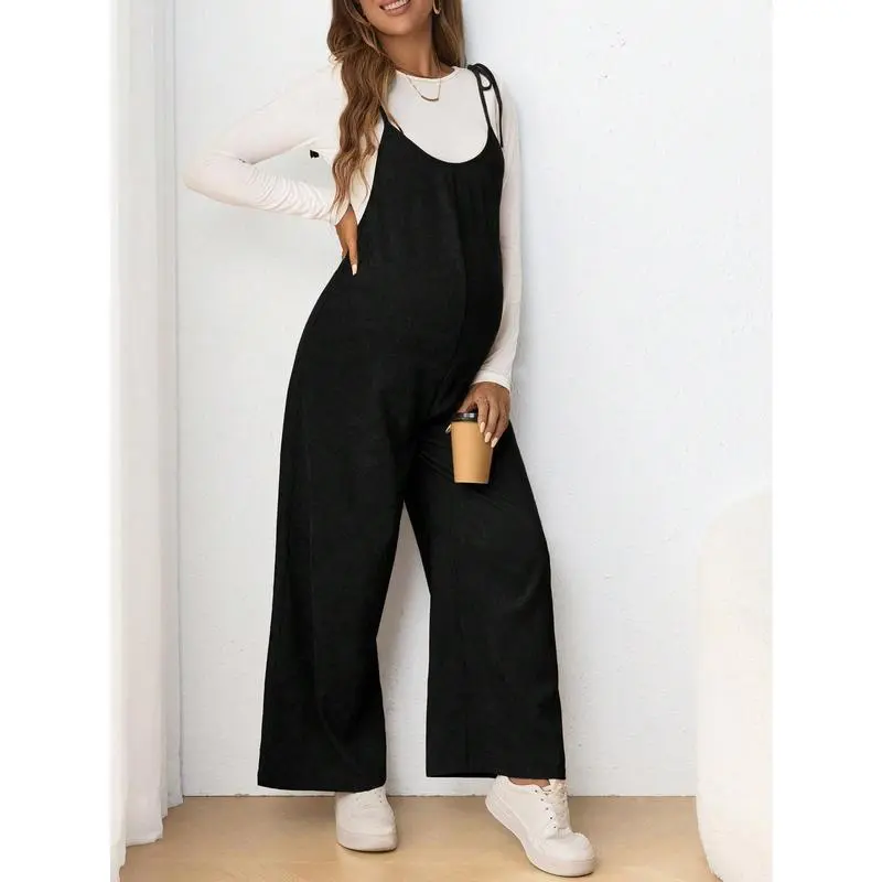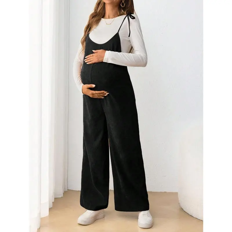 Maternity Casual Spaghetti Strap Long Jumpsuit With Bow Tie, Pregnancy