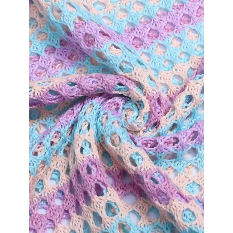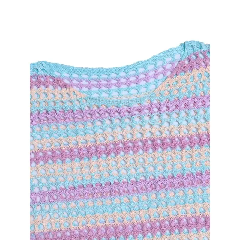 Tanming Womens Short Sleeve Sweater Round Neck Ruffled Hem Knit Crochet Pullover Casual Top Blouse Springfresh Summer Outfit