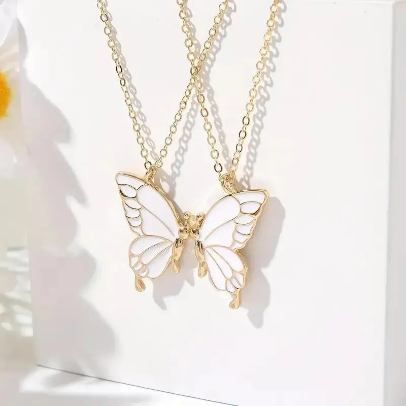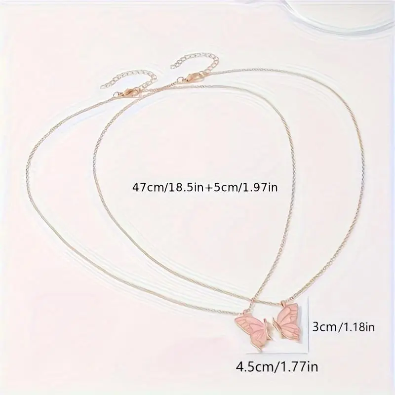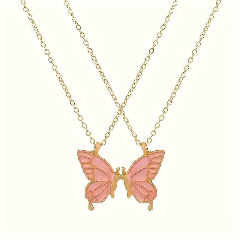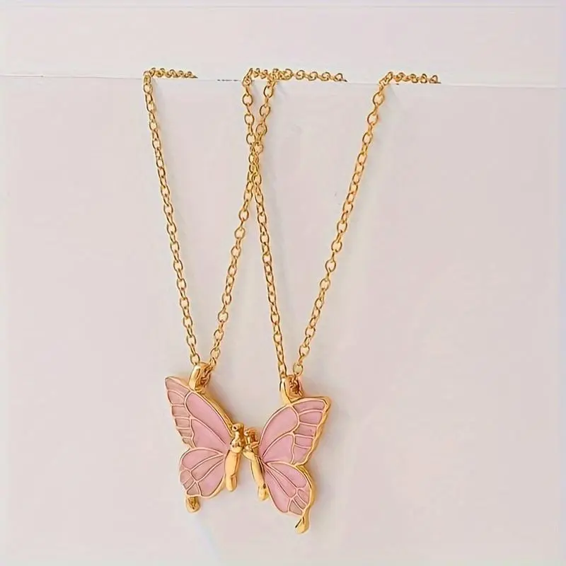 2025 Selected Good Products 2pc Pink Butterfly Pendant Necklace Adjustable Zinc Alloy Choker Jewelry Elegant Chain for Couples