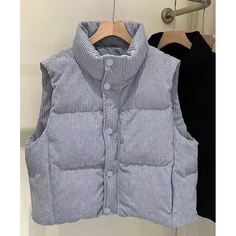 Corduroy Puffer Vest Button and Zipper Closure Fit: Slightly Oversized Material: 95% Polyester 5% Spandex
