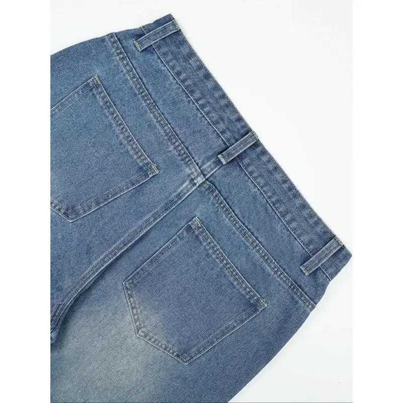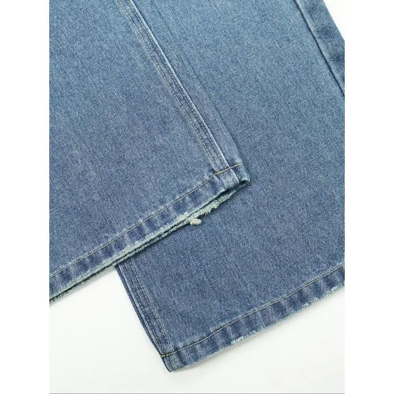 Frayed Seam Washed Low Rise Straight Leg Jeans