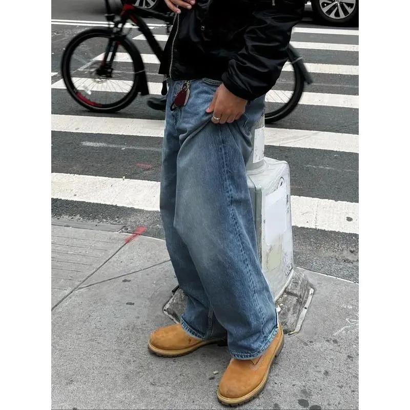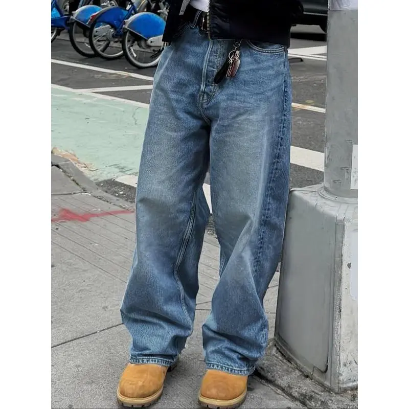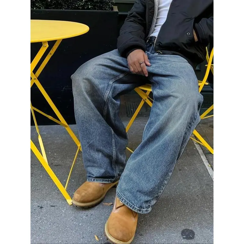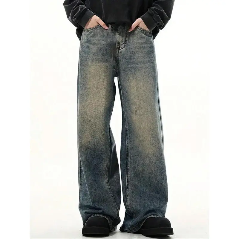 Men'sVintageWashedDenimJeans,LooseCasualComfyStraightLegJeansforDailyWear,WovenBottomsforAllSeasons,Cotton