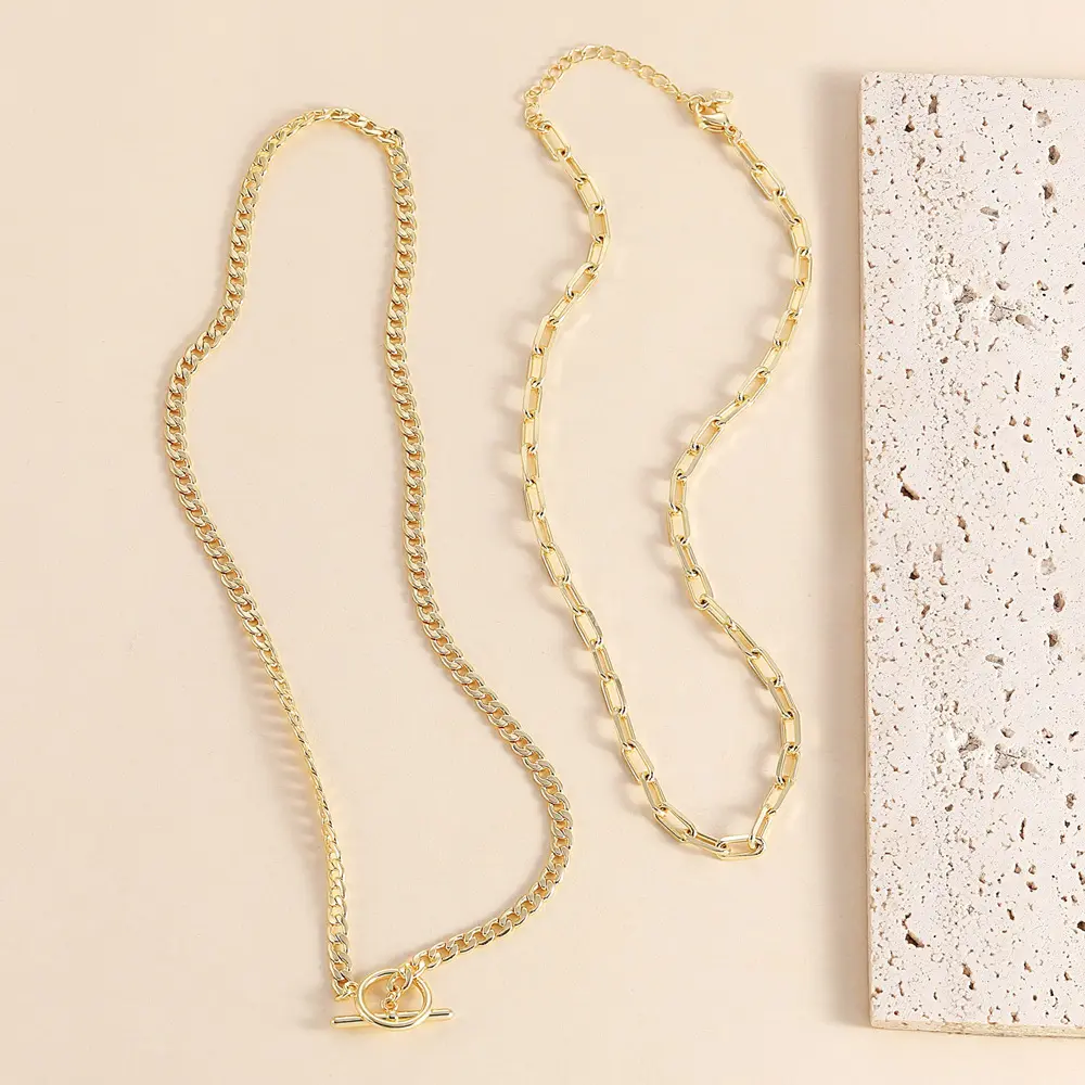 Women's double-layer 14K gold-plated/silver-plated necklace, fashionable Cuban chain with paperclip clasp, suitable for women's daily wear