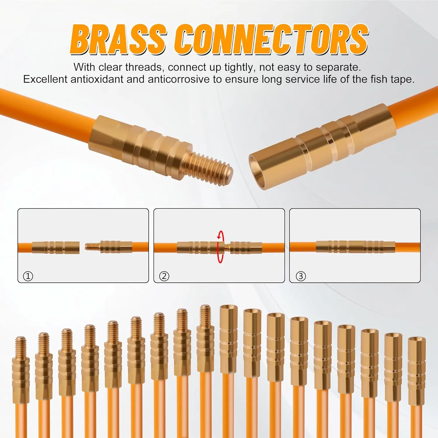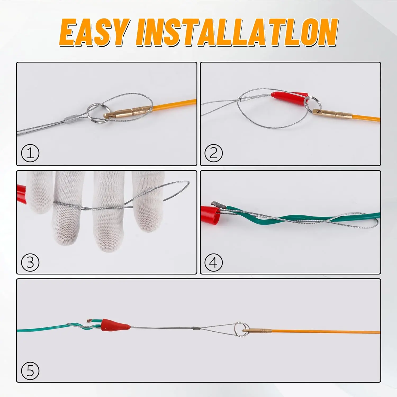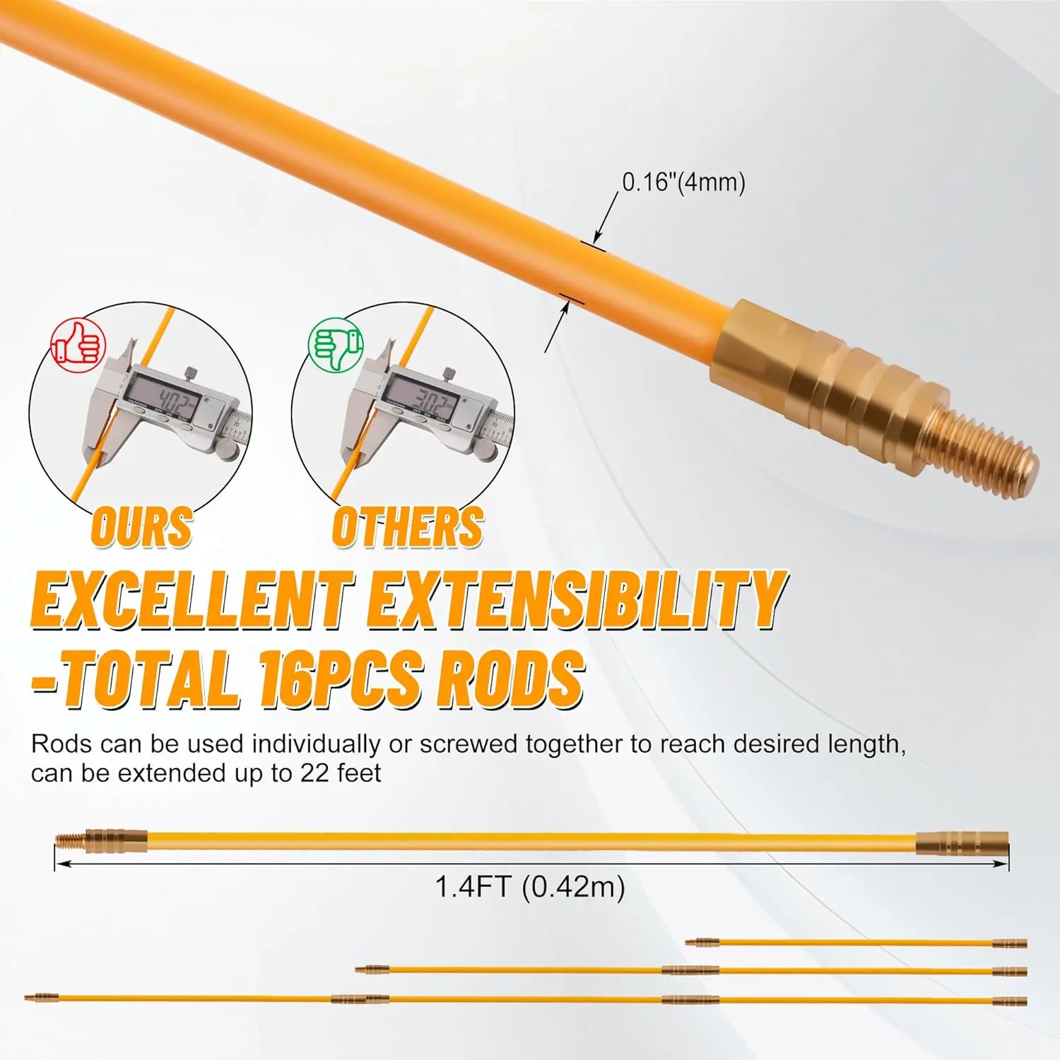 22FT Fiberglass Electrical Wire Running Kit Wire Fishing Tools Fish Tape Wire Puller Through Wall Cable Snake Fish Rods Kit with Different Attachments