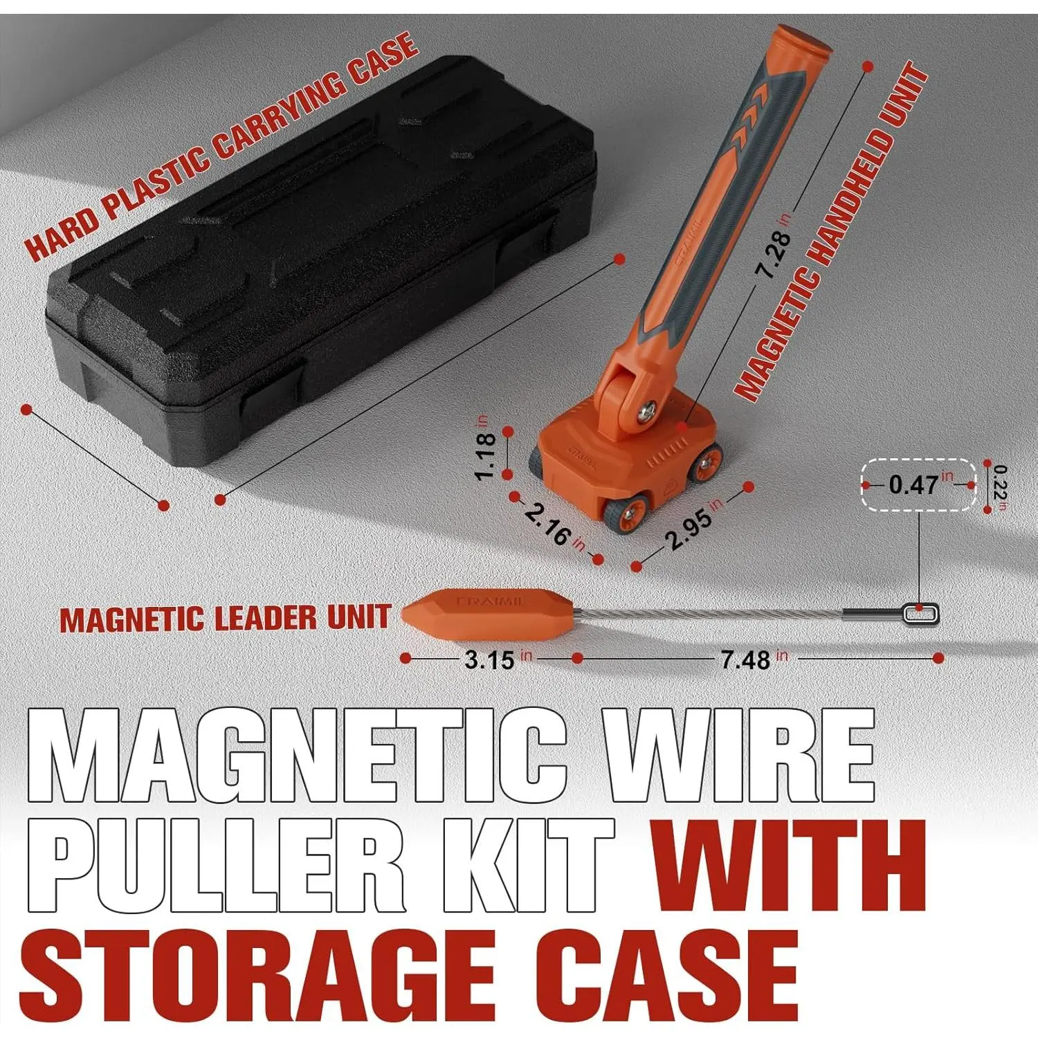 Magnetic Wire Puller for Electrical Wiring – Rare-Earth Magnets, Stainless-Steel Leader for Easy Cable Pulling in Walls & Tight Spaces, Doubles as Stud Finder, Includes High-Quality Hard Plastic Case