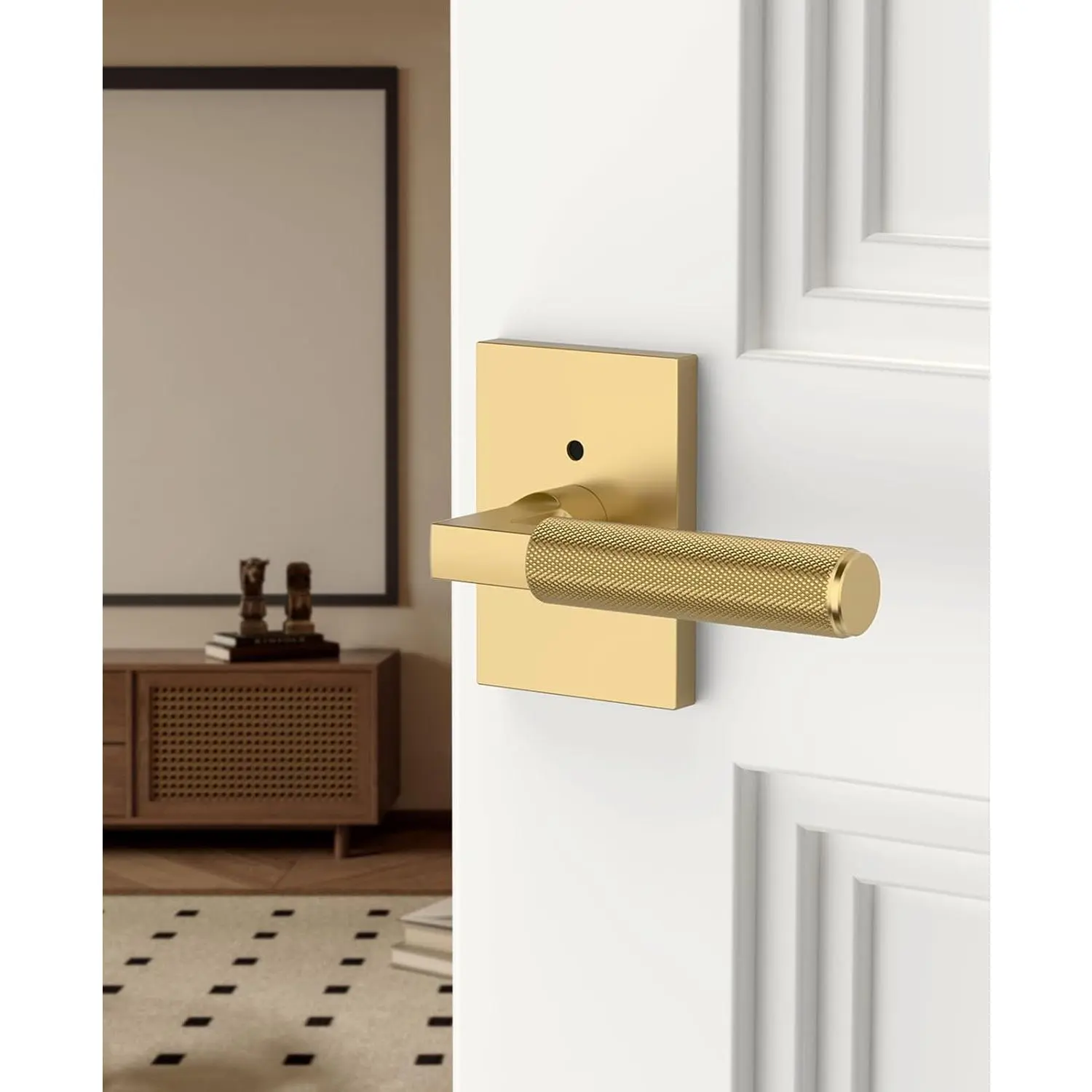 6 Pack Champagne Bronze Privacy Door Handles, Door Lever with Door Knobs Indoor for Bedroom or Bathroom, Heavy Duty Door Handles Interior with Locks for Left Right Sided Doors