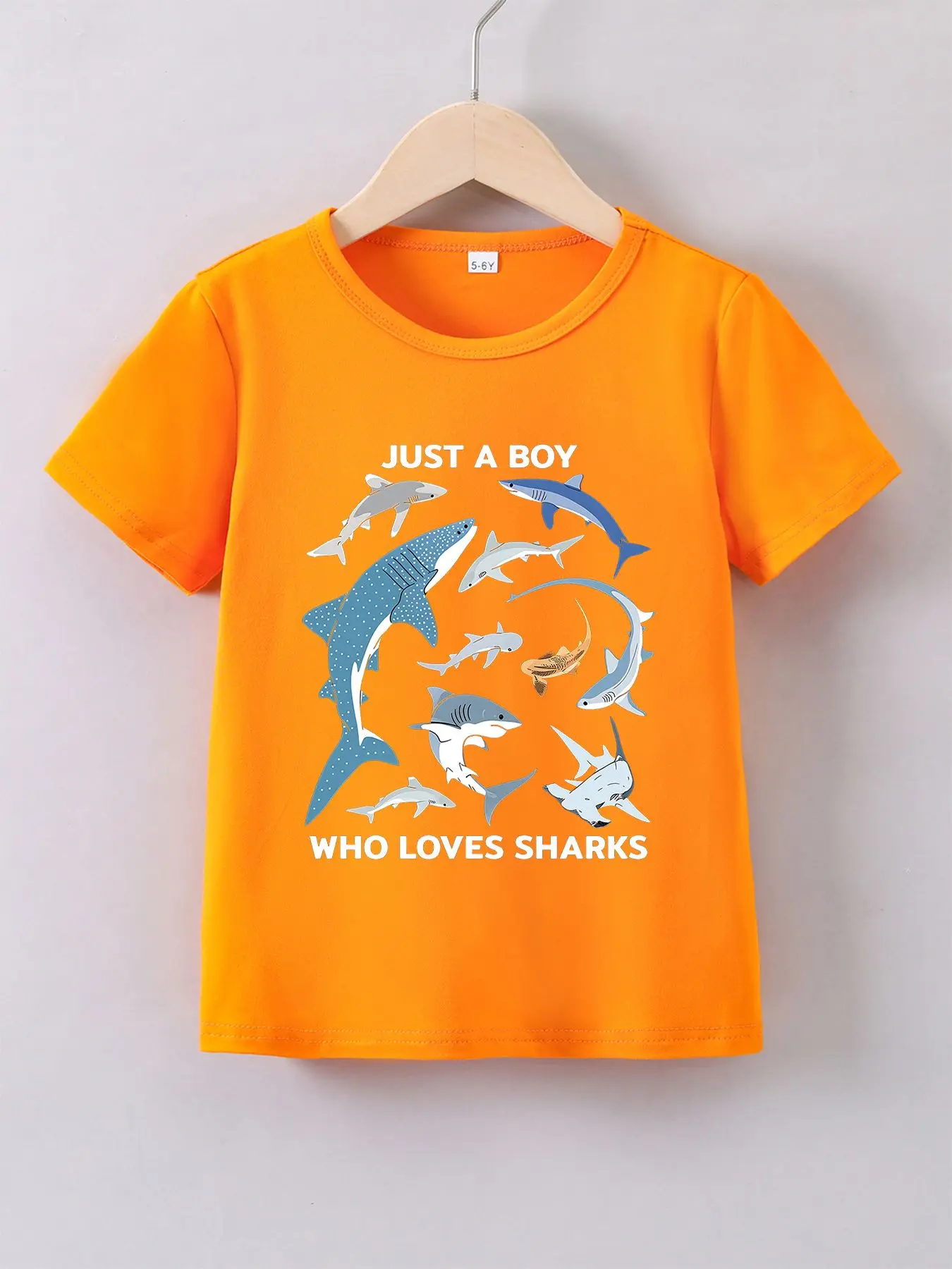 Boys' Summer Breathable & Comfortable "Ocean Animals" Cartoon Print (3-12Y) Casual Sports T-Shirt