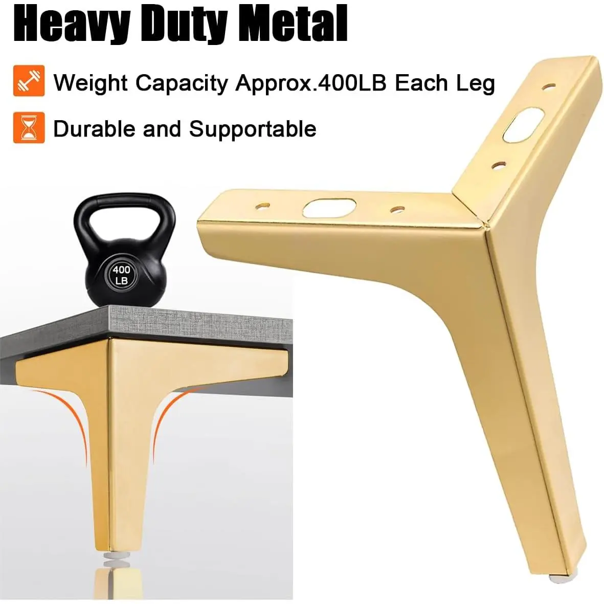 7 inch Metal Furniture Legs, Gold Legs for Furniture Set of 8, Modern Replacement feet for Cabinet Sofa Couch Table Chair Bed Dresser Wardrobe Risers DIY Replacement