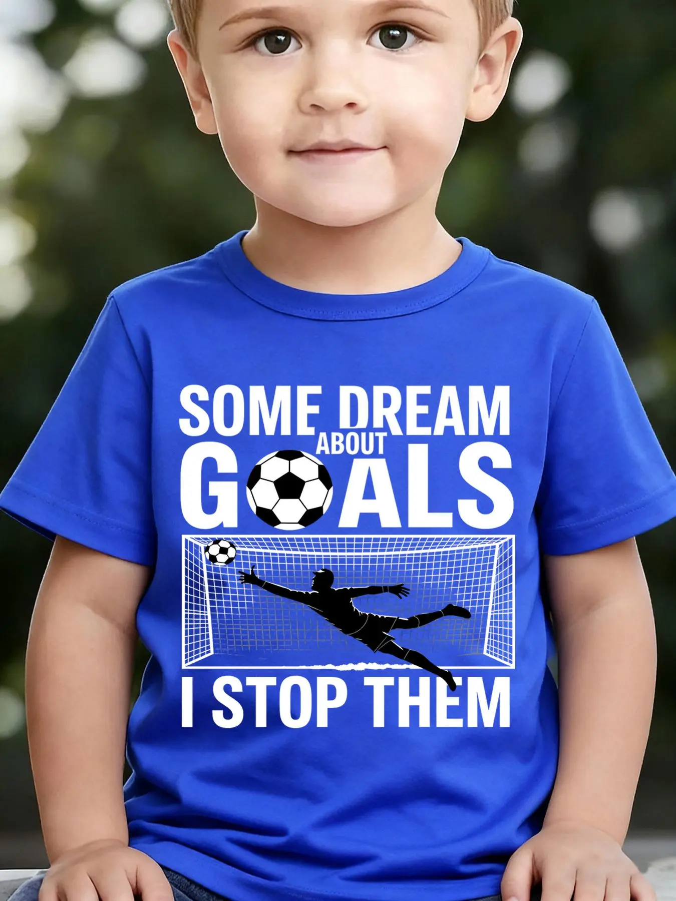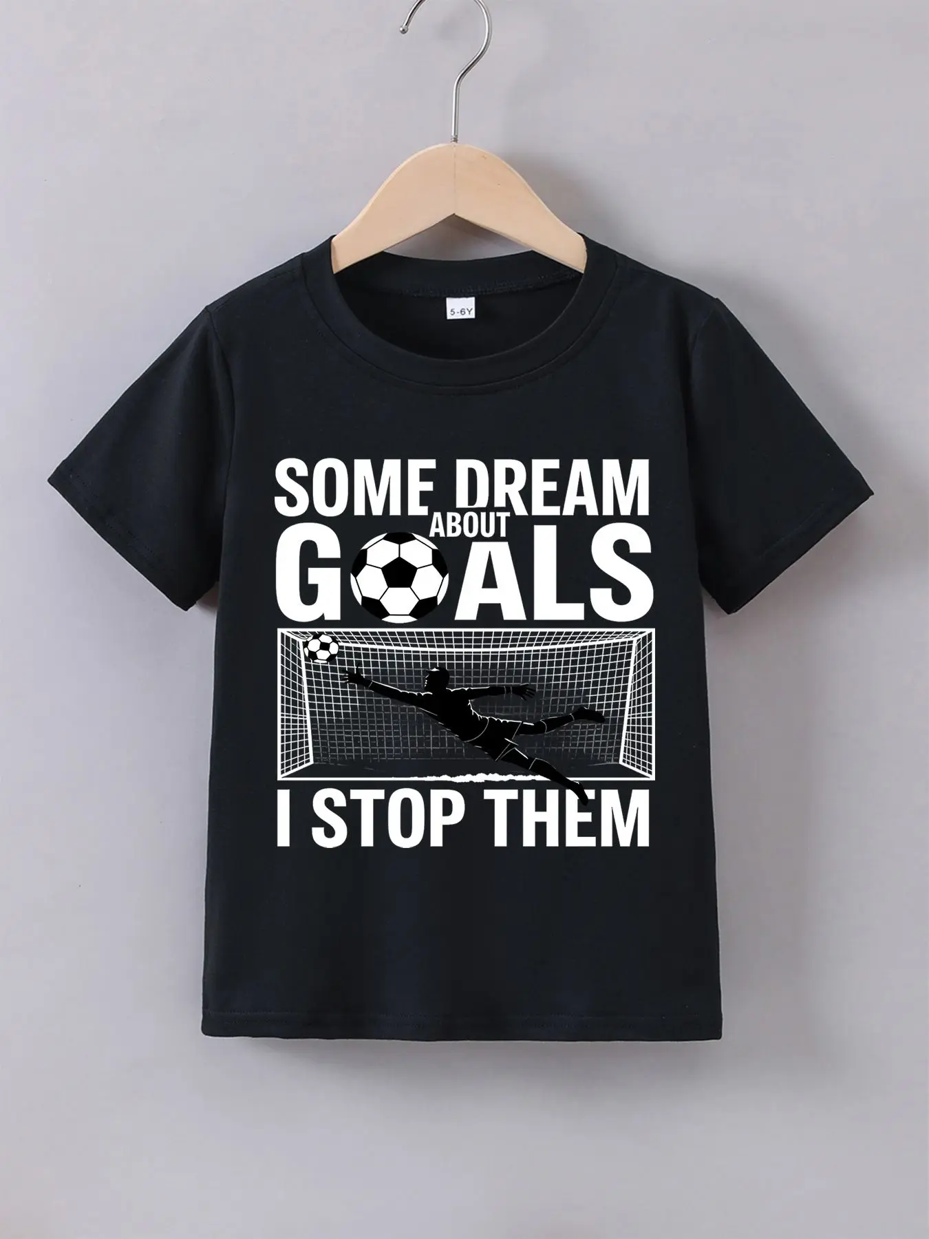 Boys' Summer Breathable & Comfortable "Goalkeeper Save Silhouette Soccer" Cartoon Print (3-12Y) Casual Sports T-Shirt