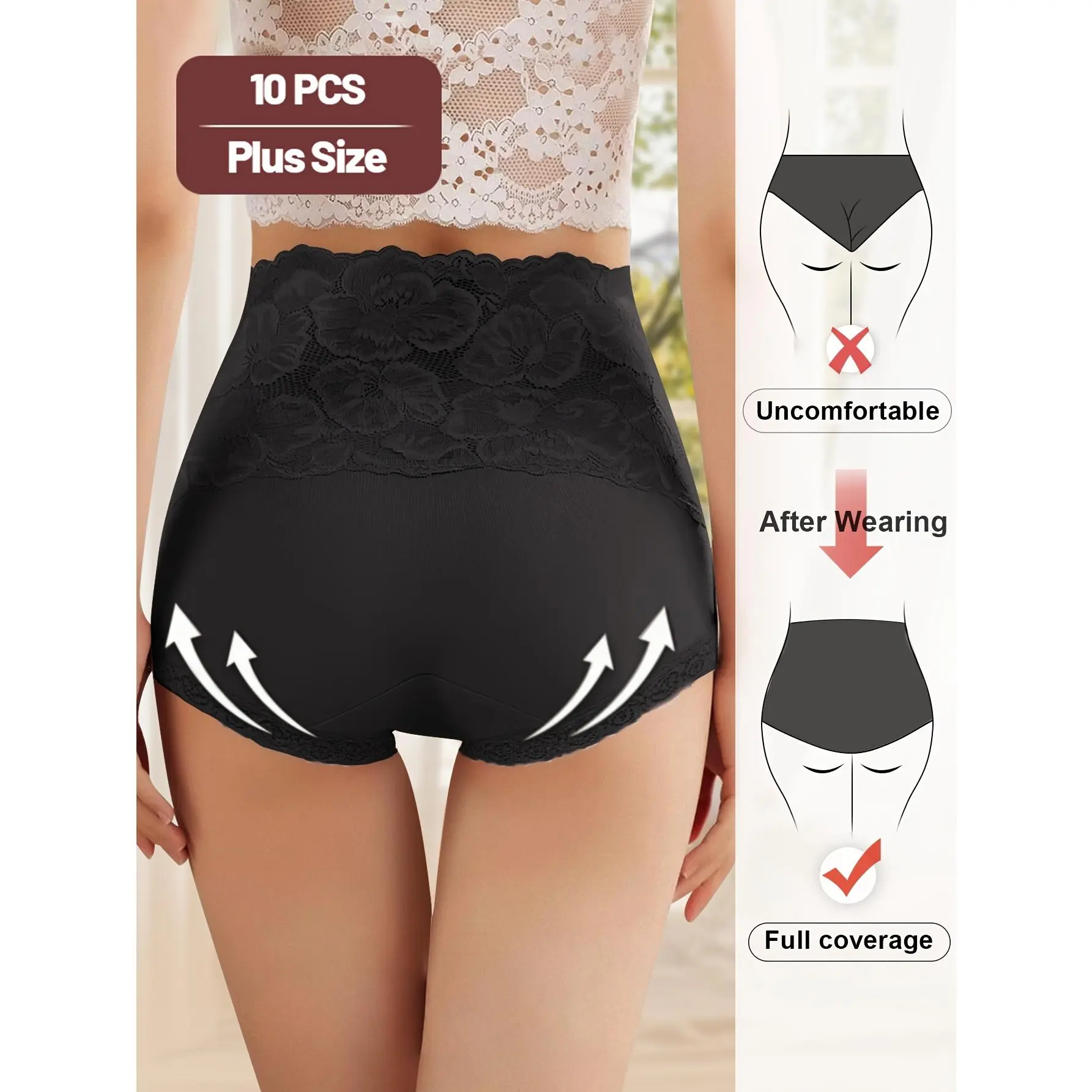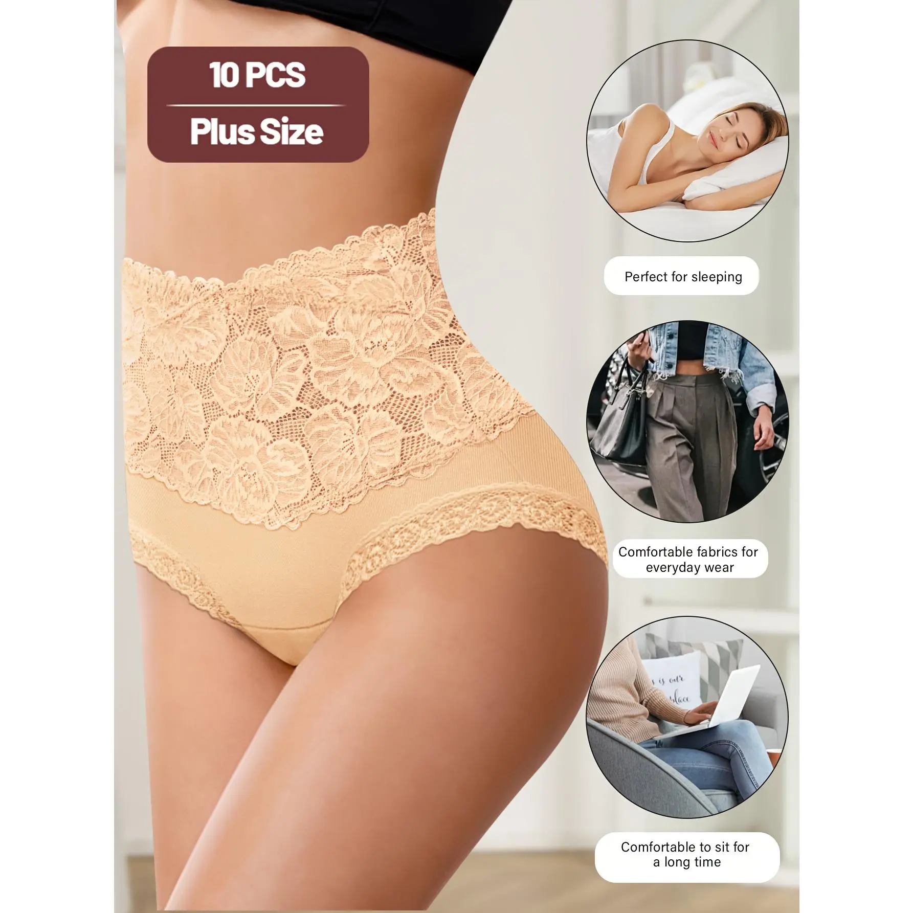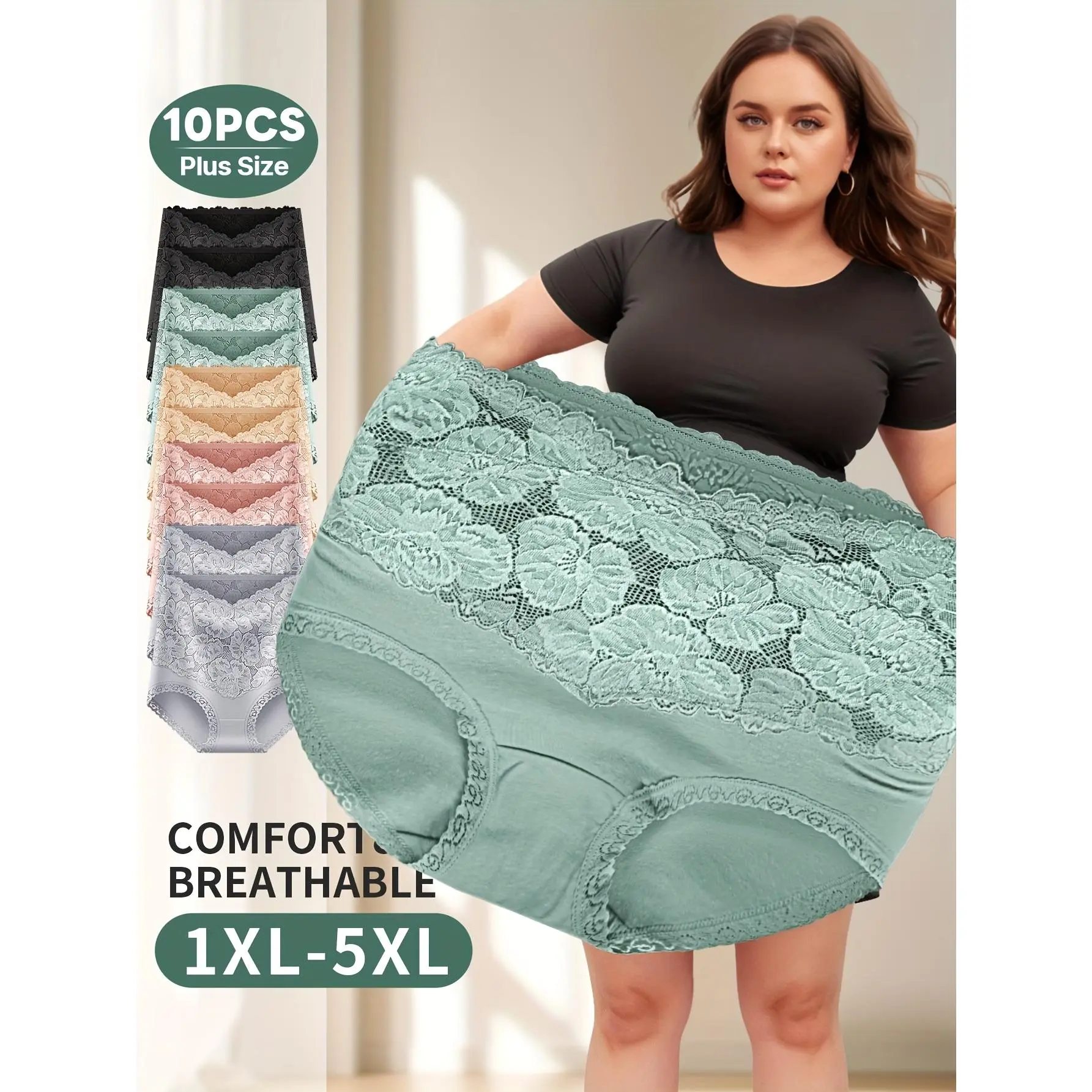 10 Pack High Stretch Lace Briefs Plus Size Soft Breathable Comfortable Fit