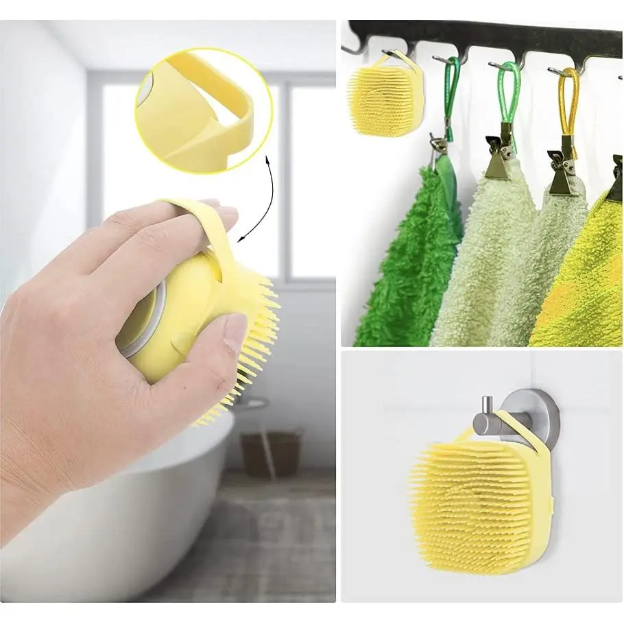 -[Quick Dry and Save Space] A hang hole design allows the multi-functional dog grooming brush to be easily hanged to dry after use, saves space. However, please pour out the excess water and show gel to avoid the soap leak out.