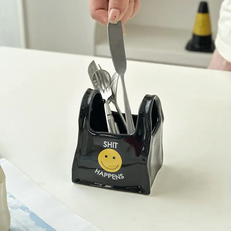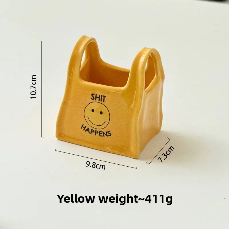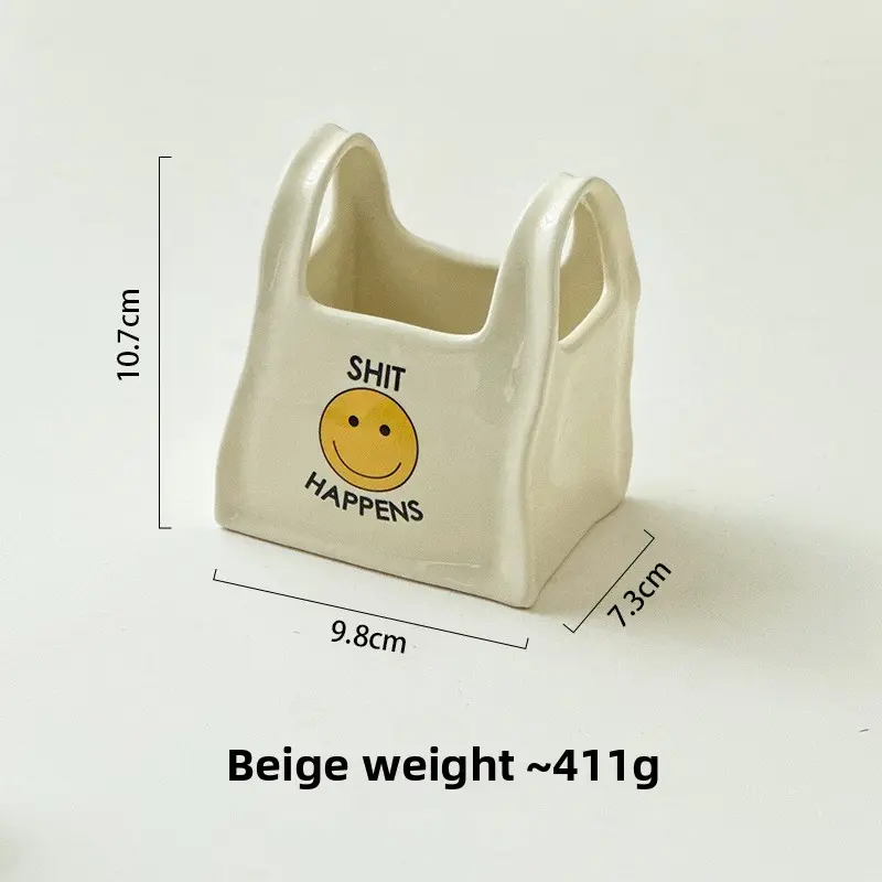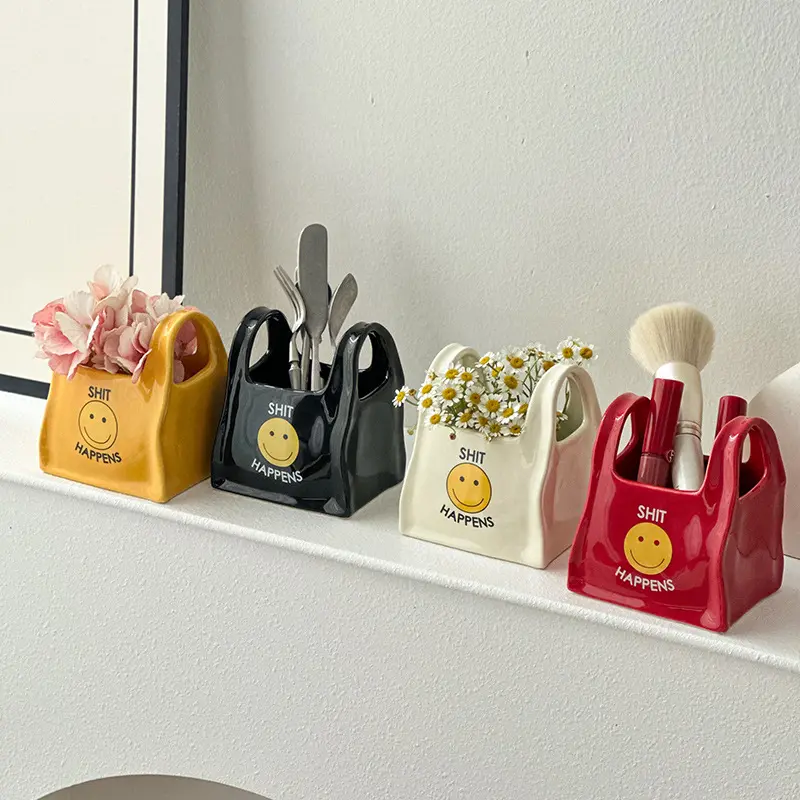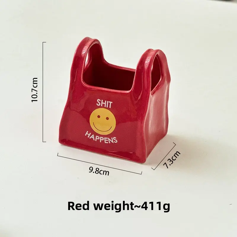 Unique handcrafted bag, creative ceramic pen holder for desktop, stationery storage box, small decorative makeup pen holder