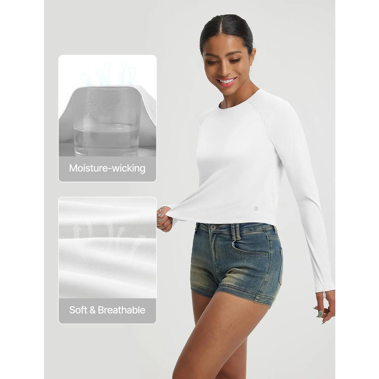 baleaf 2026 New Women's UPF 50+ Long Sleeve Sun Shirts Crop Rash Guard UV Workout Tops SPF Slim Fit Lightweight Athletic Hiking [PC:bho026]