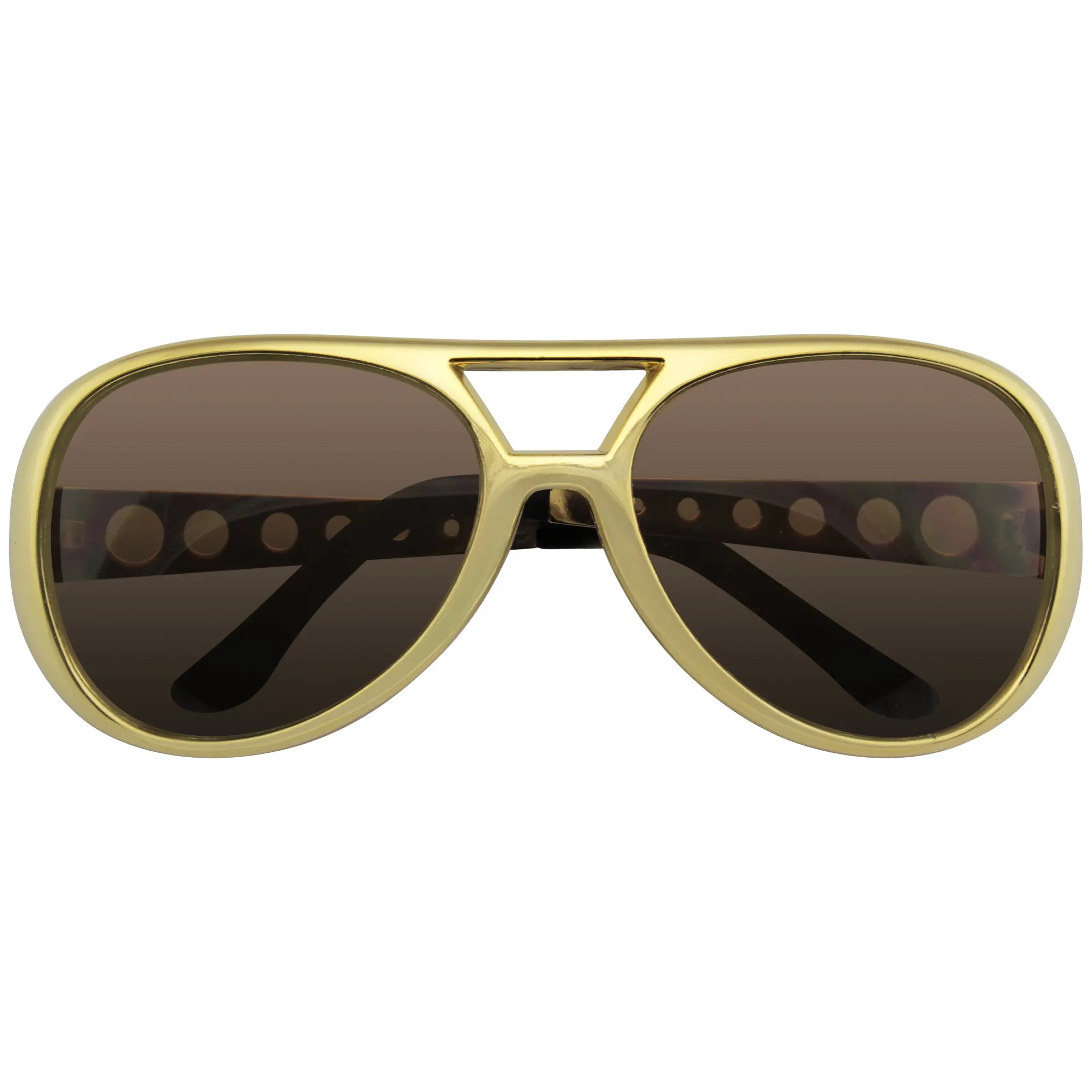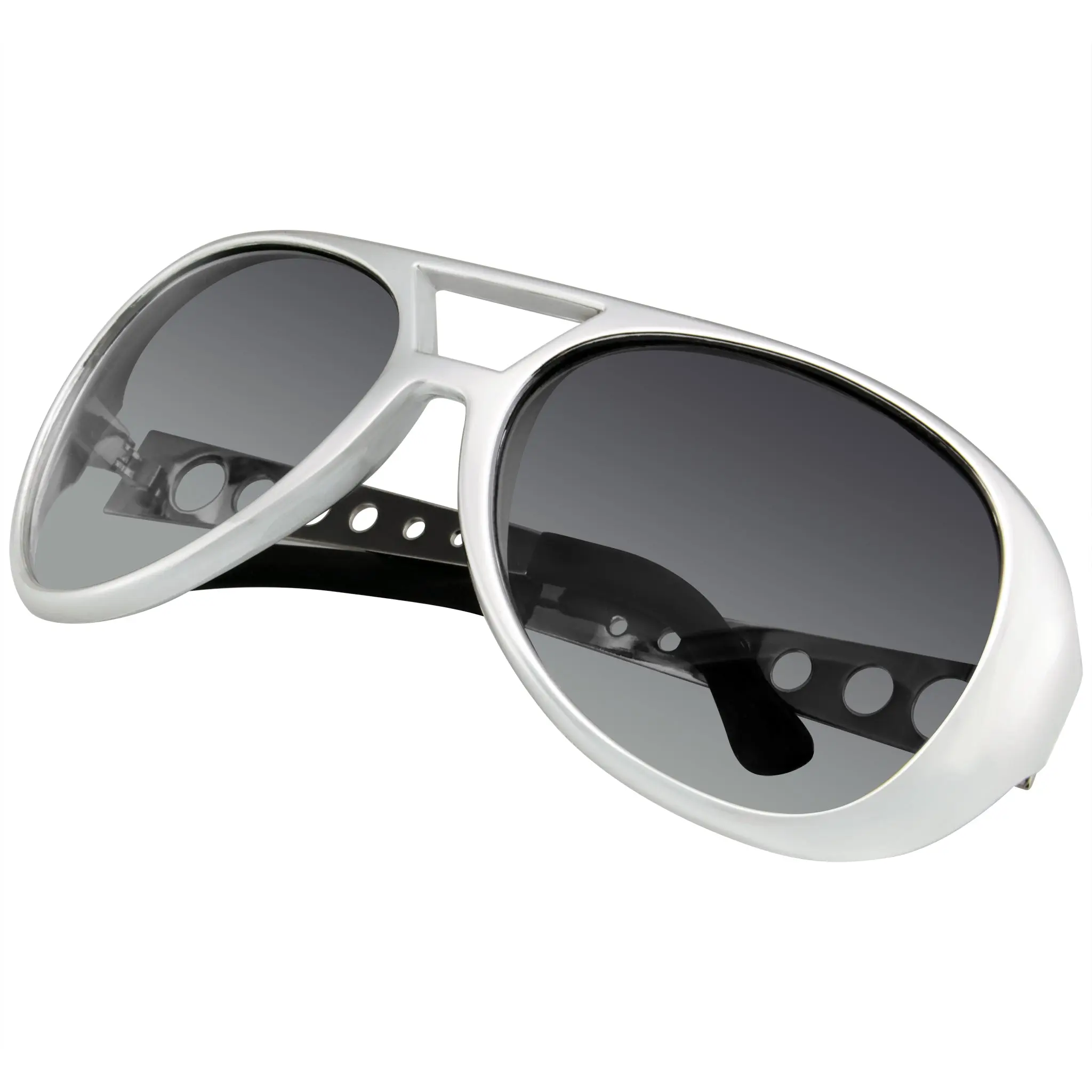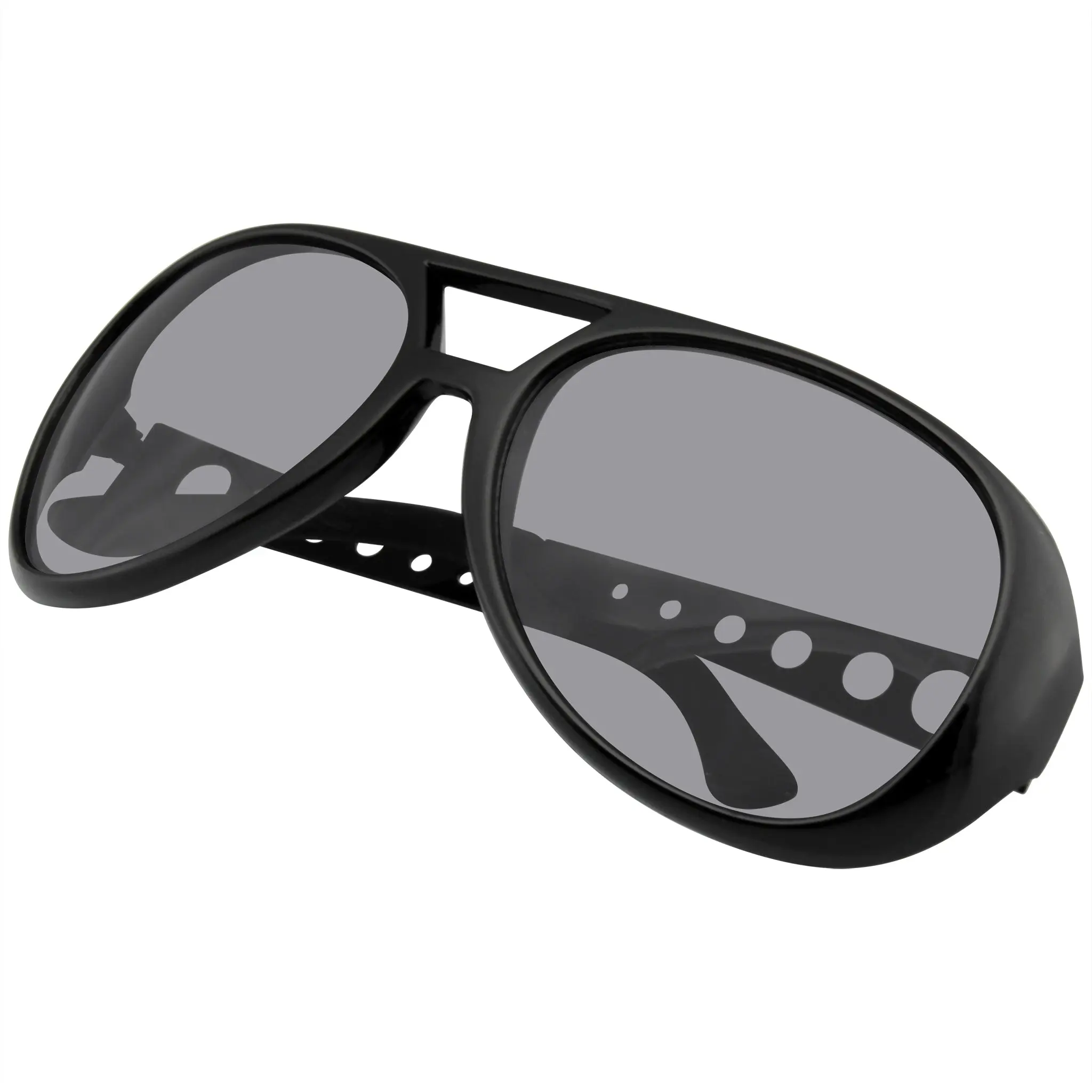 Be like Elvis King of Rock and roll with these awesome rockabilly replica shades! These sunglasses are perfect for emulating the King himself! Completing your Halloween costume or just going for that rock star look? These sunglasses are the perfect accessory. This item features metal arms and a polycarbonate 100% UV high impact-resistant protected lens. Includes a FREE traveling case, sticker, and mini screwdriver. Make a Statement in these shades!
