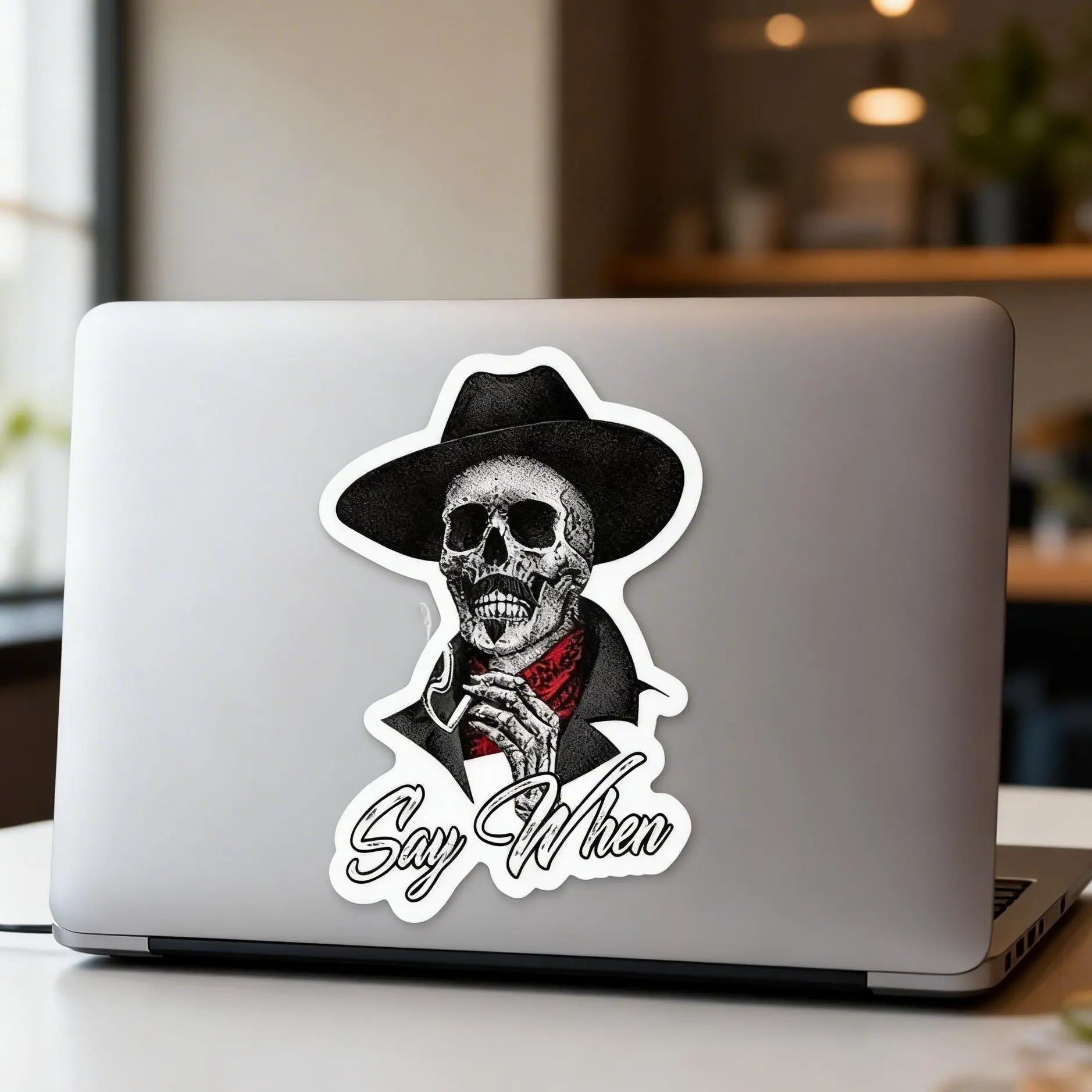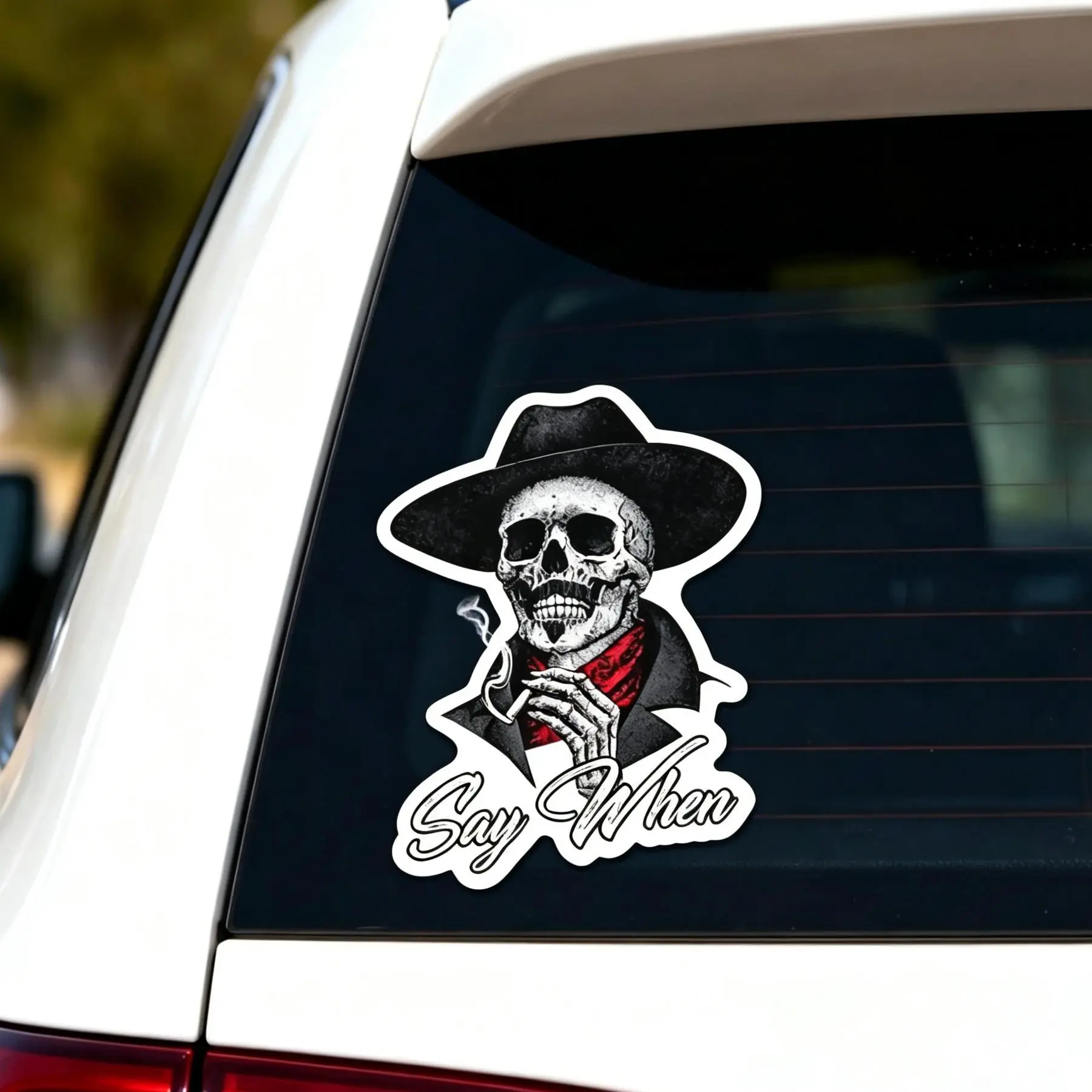 ·Say When Doc Holiday Sticker Decal Skeleton Skull Tombstone,This cool and durable vinyl sticker is perfect for various surfaces. Ideal for cars, windows, bumpers, trucks, motorcycles, water bottles, laptops, and smooth surfaces. Available in multiple colors. Long-lasting design ensures it stays vibrant.