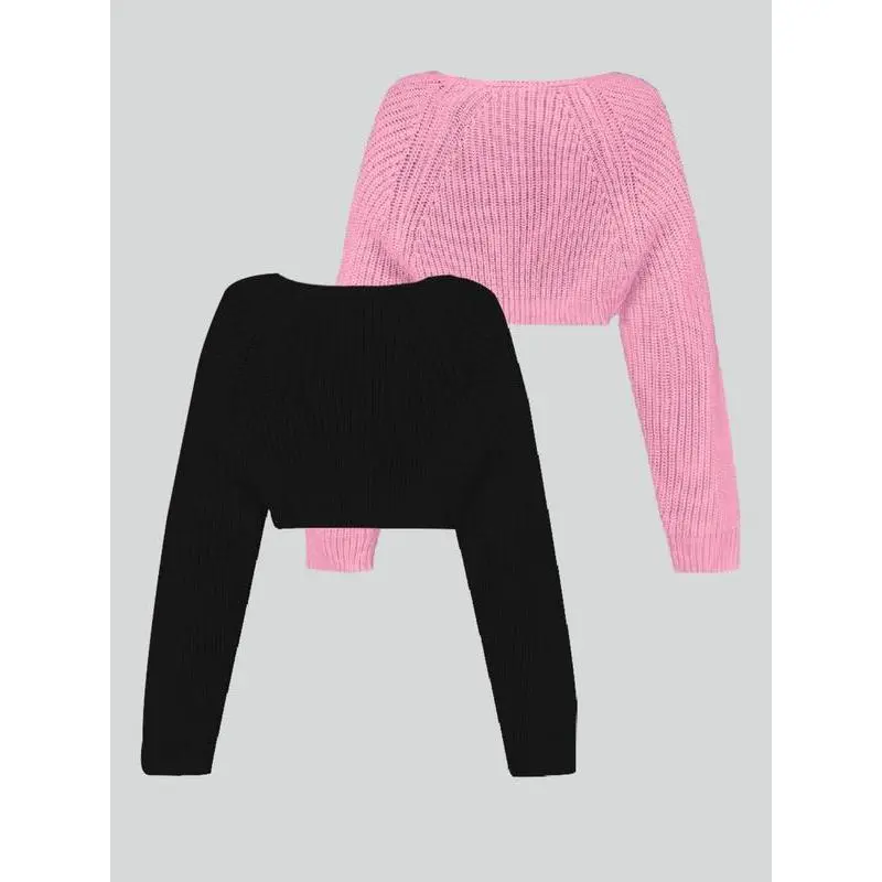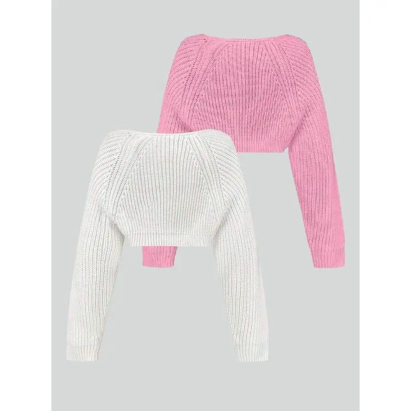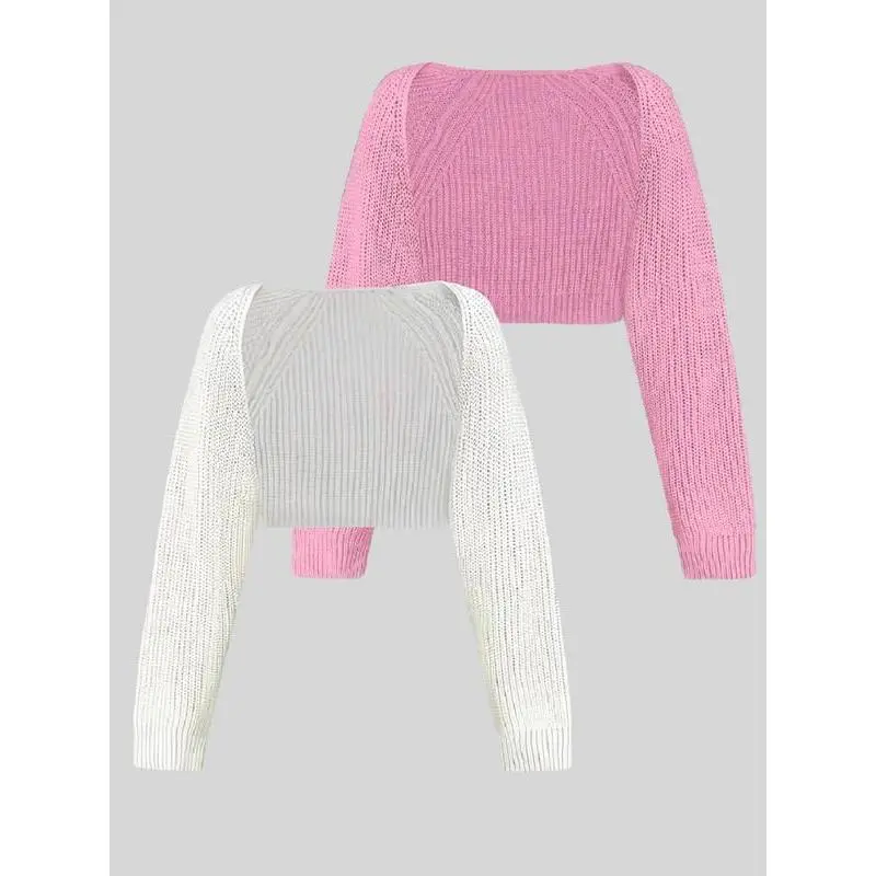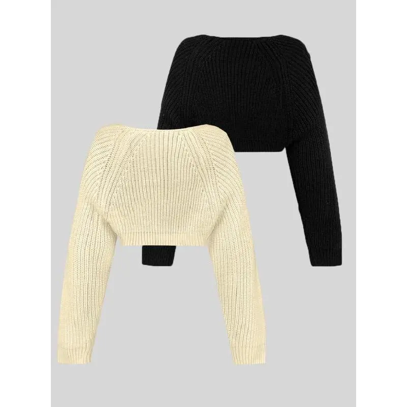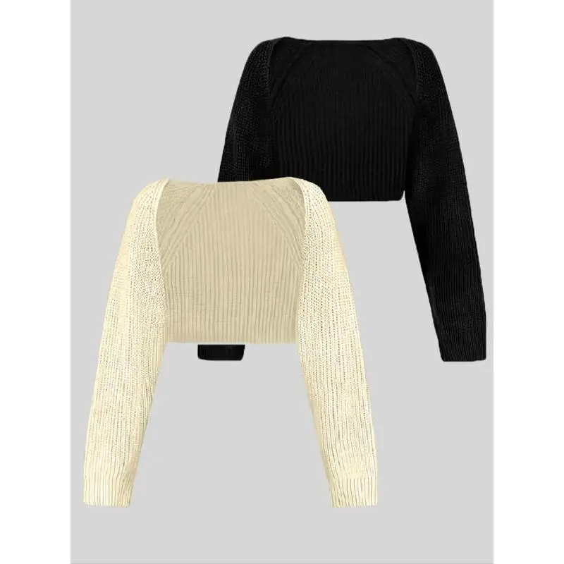 Women'sSolidColorRaglanSleeveCropShrugCardigan,CasualLongSleeveOpenFrontKnitwearforSpring&Fall,FashionWomen'sKnitClothingforDailyWear