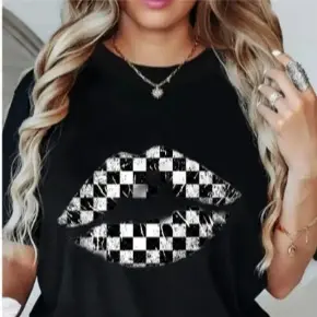 ·Design & Style: This tee features a black and white checkered lips print, perfect for a casual summer look. Ideal for men and women, it offers a trendy streetwear vibe. 🎨