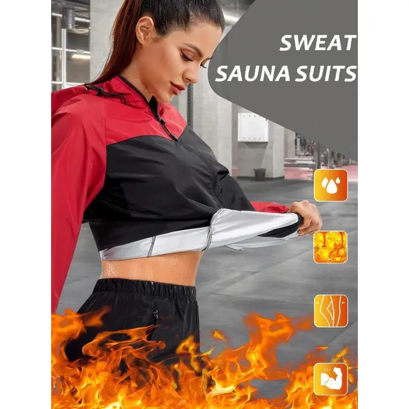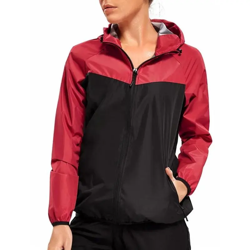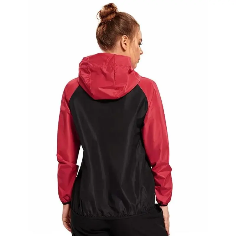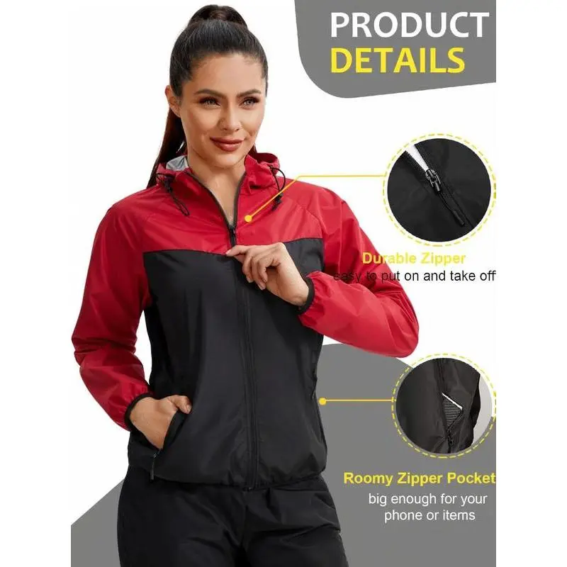 Women's Colorblock Zip Up Hooded Sports Sauna Jacket, Sporty Drawstring Pocket Zipper Outerwear for Gym Workout Running, Ladies Sportswear for All Seasons, Clothing