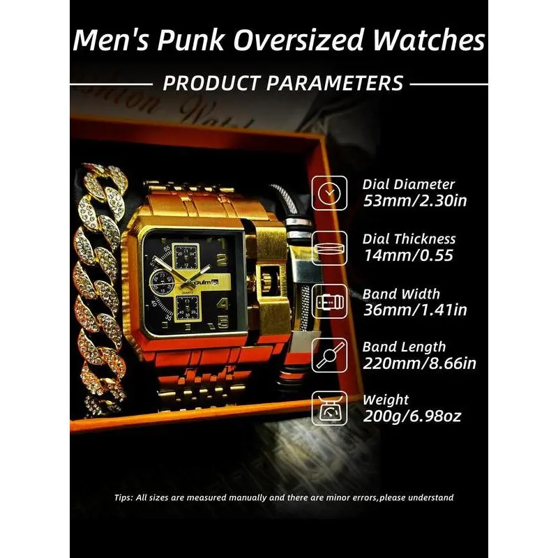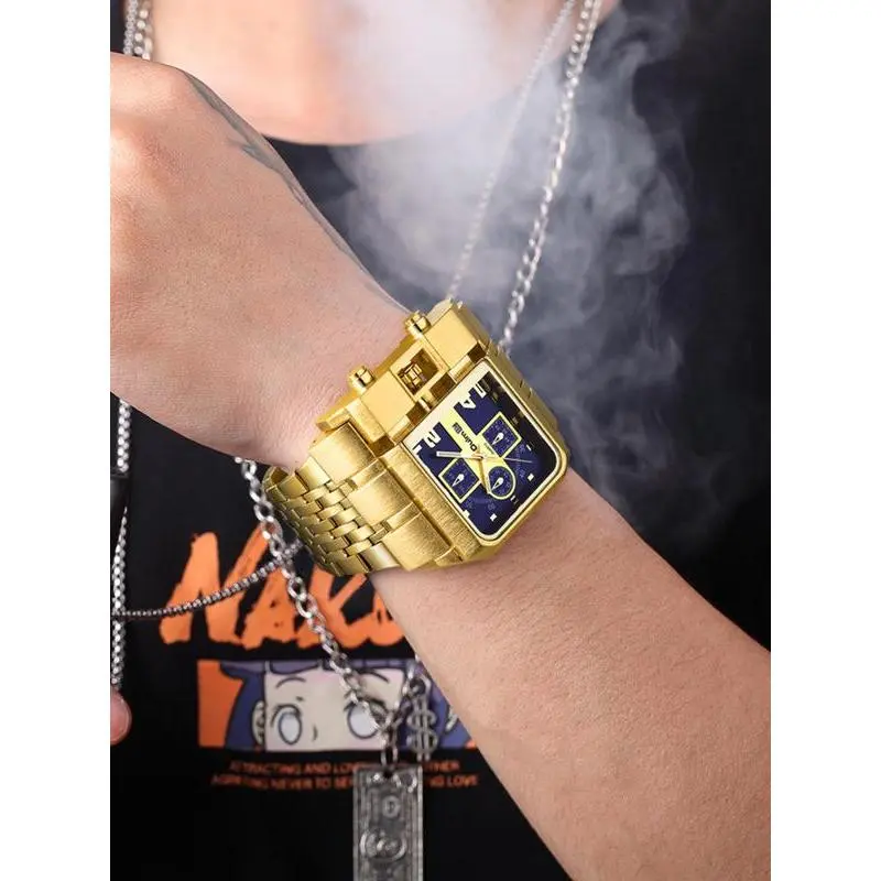 Men's Street Style Rectangle Dial Quartz Watch, Fashion Watch for Party, Fashionable Party Watch, Daily Clothing Decor, Trendy All-match & Exquisite Watch for Birthday Gift with Box