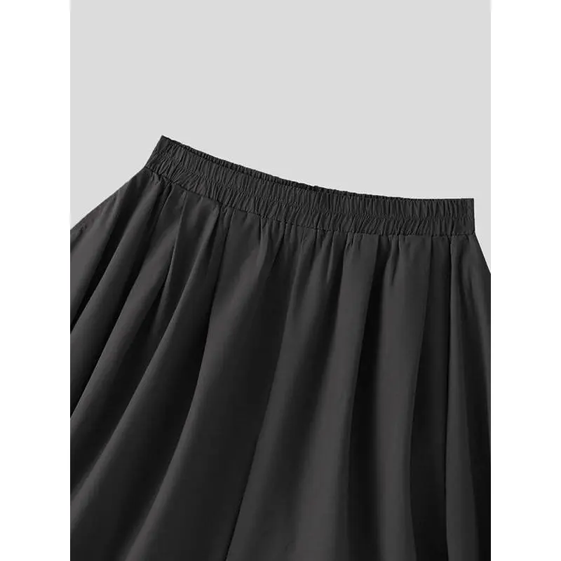 Mens Elastic Waist Ruffles Baggy Harem Trousers Fashion Loose Cargo Long Pants Casual Streetwear Trousers