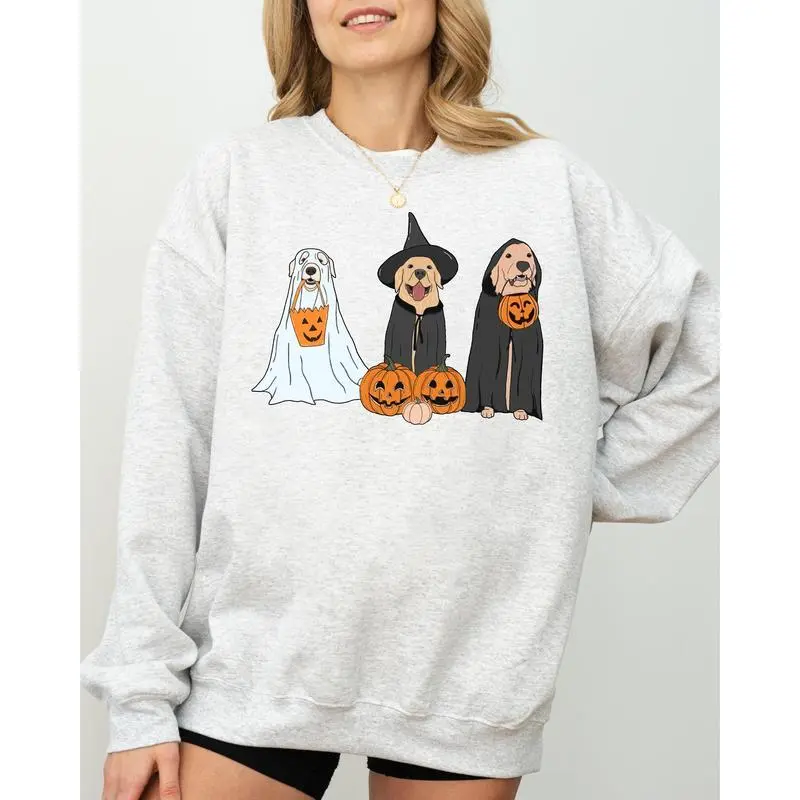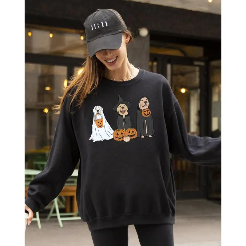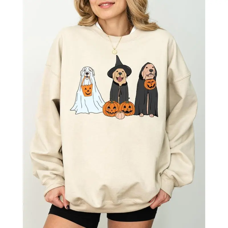 Get ready to celebrate Halloween in style with our Dog Ghosts, Skeleton, Funny, Pumpkin, Spooky, Witch, Aesthetic, Meme, Halloween, Costume Sweatshirt. This delightful graphic sweatshirt is designed to keep you cozy while showcasing your fun and quirky personality. Perfect for dog lovers and meme enthusiasts alike, this sweatshirt makes a statement that captures the spirit of the Halloween season. Material: Cotton/Polyester Blend