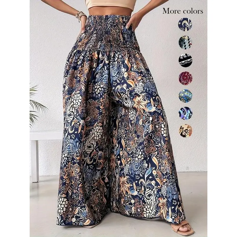 【High Waist】: Featuring a high waist, these pants offer a flattering silhouette, enhancing your figure while providing support and coverage. 【Unique Pattern】: The ethnic pattern adds a distinctive flair, allowing you to stand out with a bohemian touch that sets these trousers apart. 【Loose Fit】: Designed with a loose-fitting cut, these wide-leg trousers provide freedom of movement, making them ideal for both relaxation and activity. 【Shirred Detail】: The shirred waist design creates a beautiful texture, adding visual interest that enhances the overall look and feel of the pants. 【Machine Washable】: Durable and practical, these pants are machine washable, ensuring easy maintenance and longevity for your everyday wear.