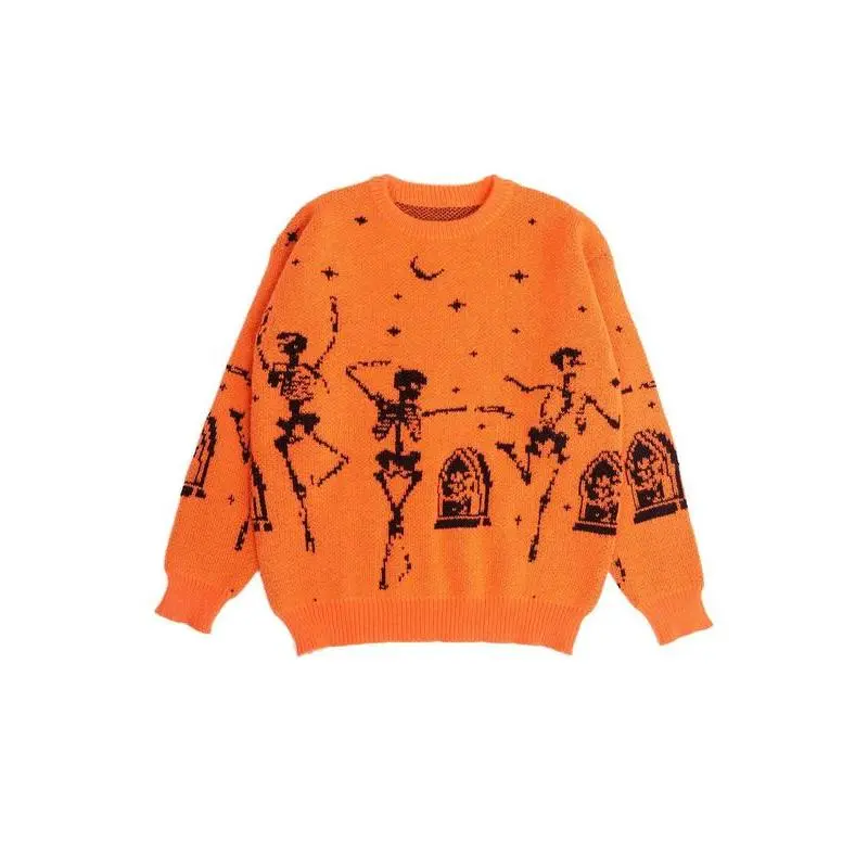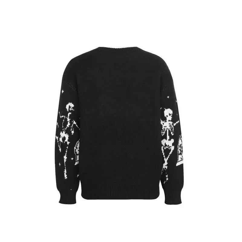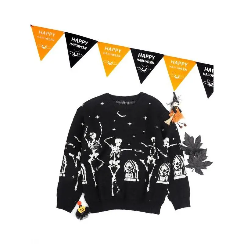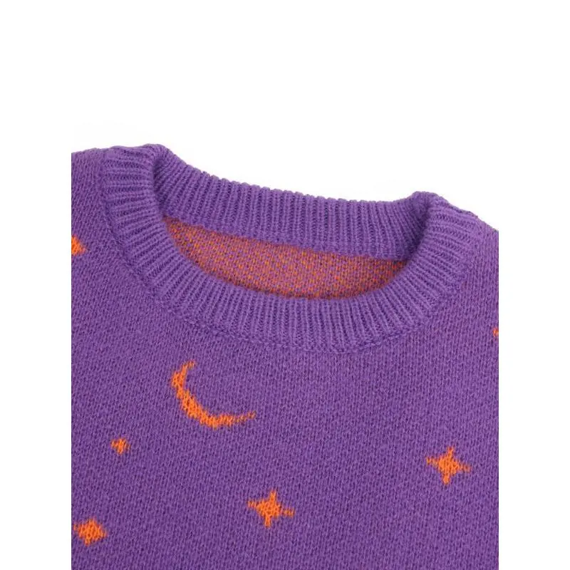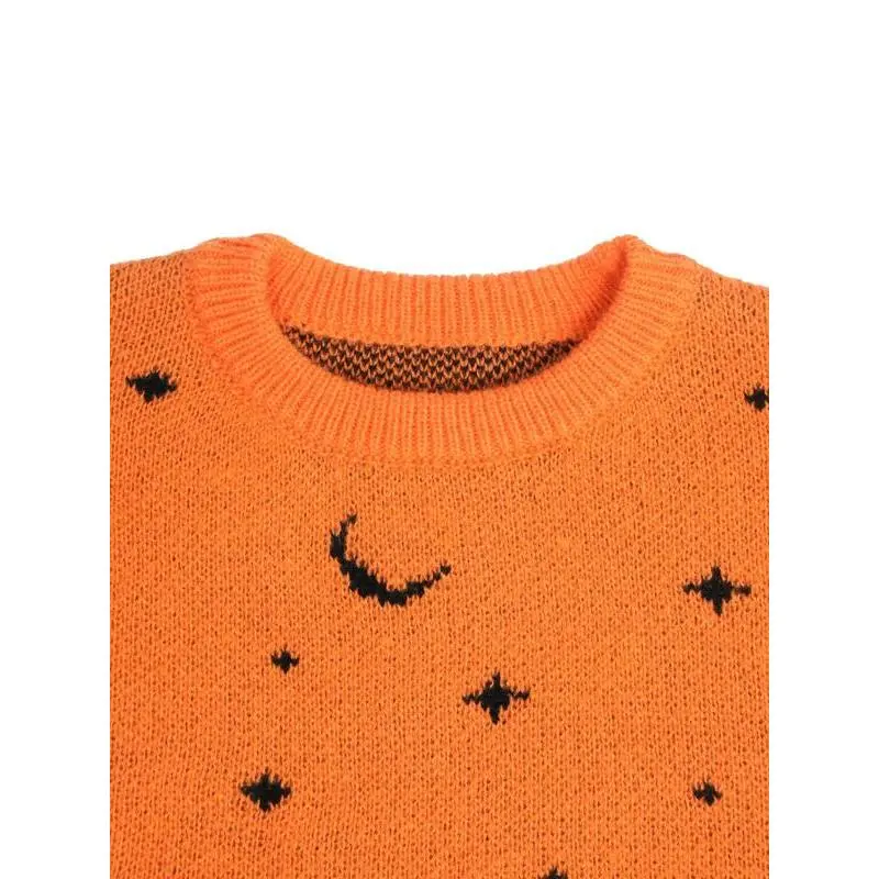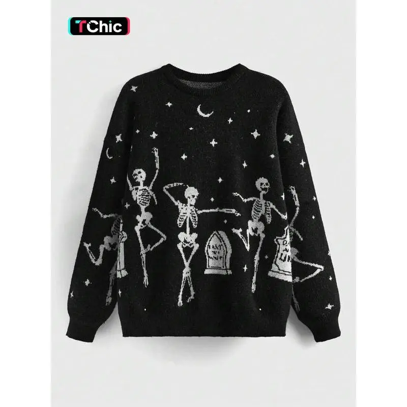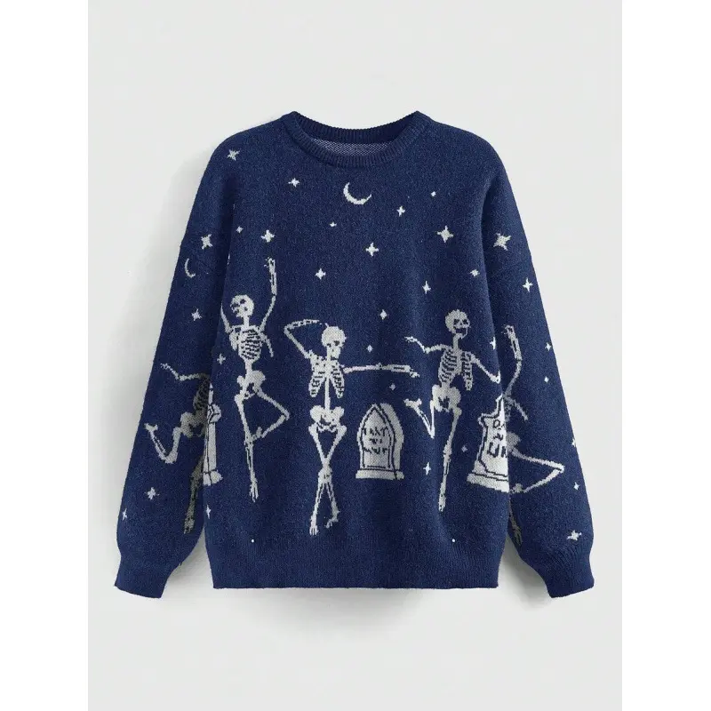 Women'sHalloweenSkeleton&Star&MoonPrintRoundNeckSweater,CasualLongSleeveCrewNeckJumperforFall,HalloweenCostumes,FashionLadies'KnitwearforDailyWear,Womenswear