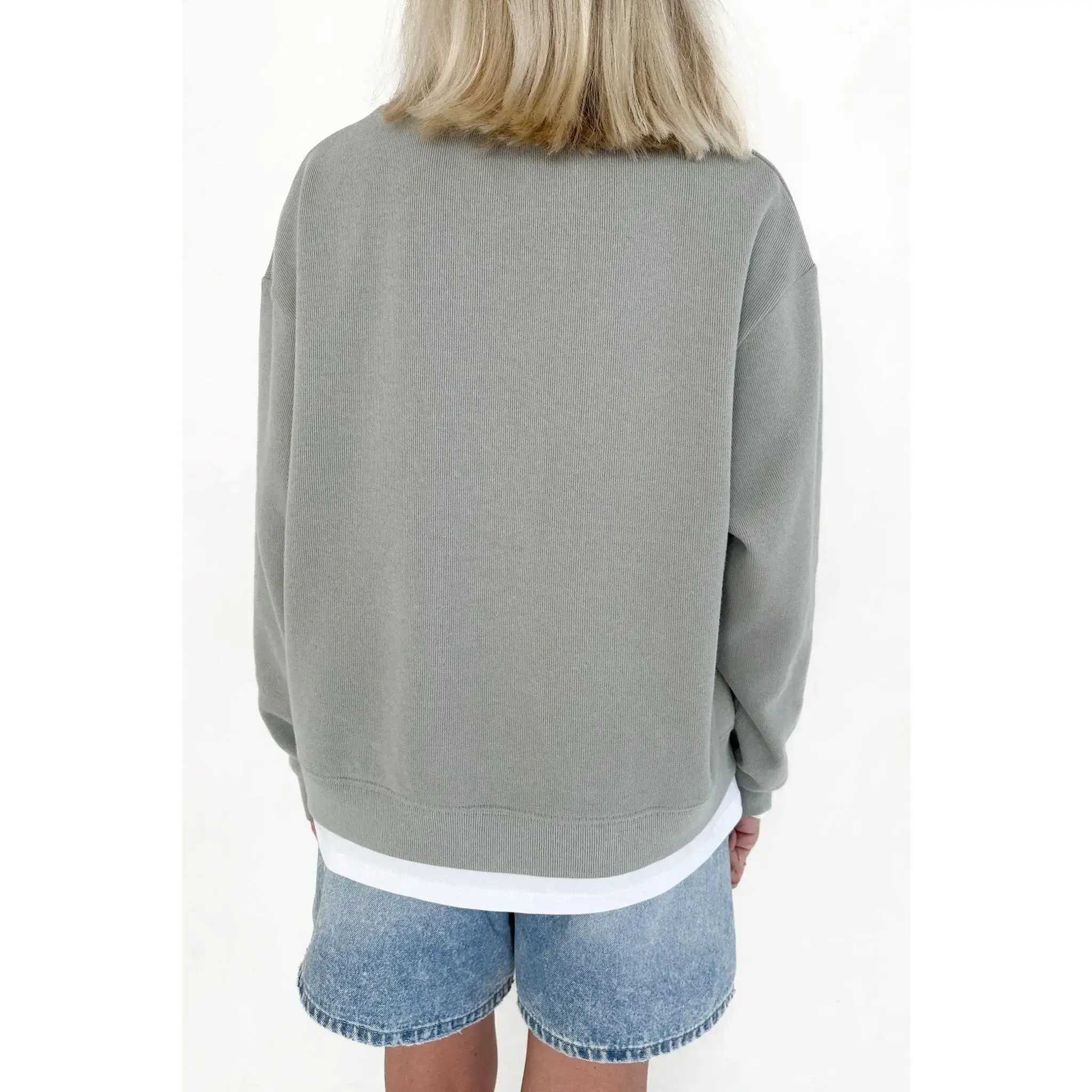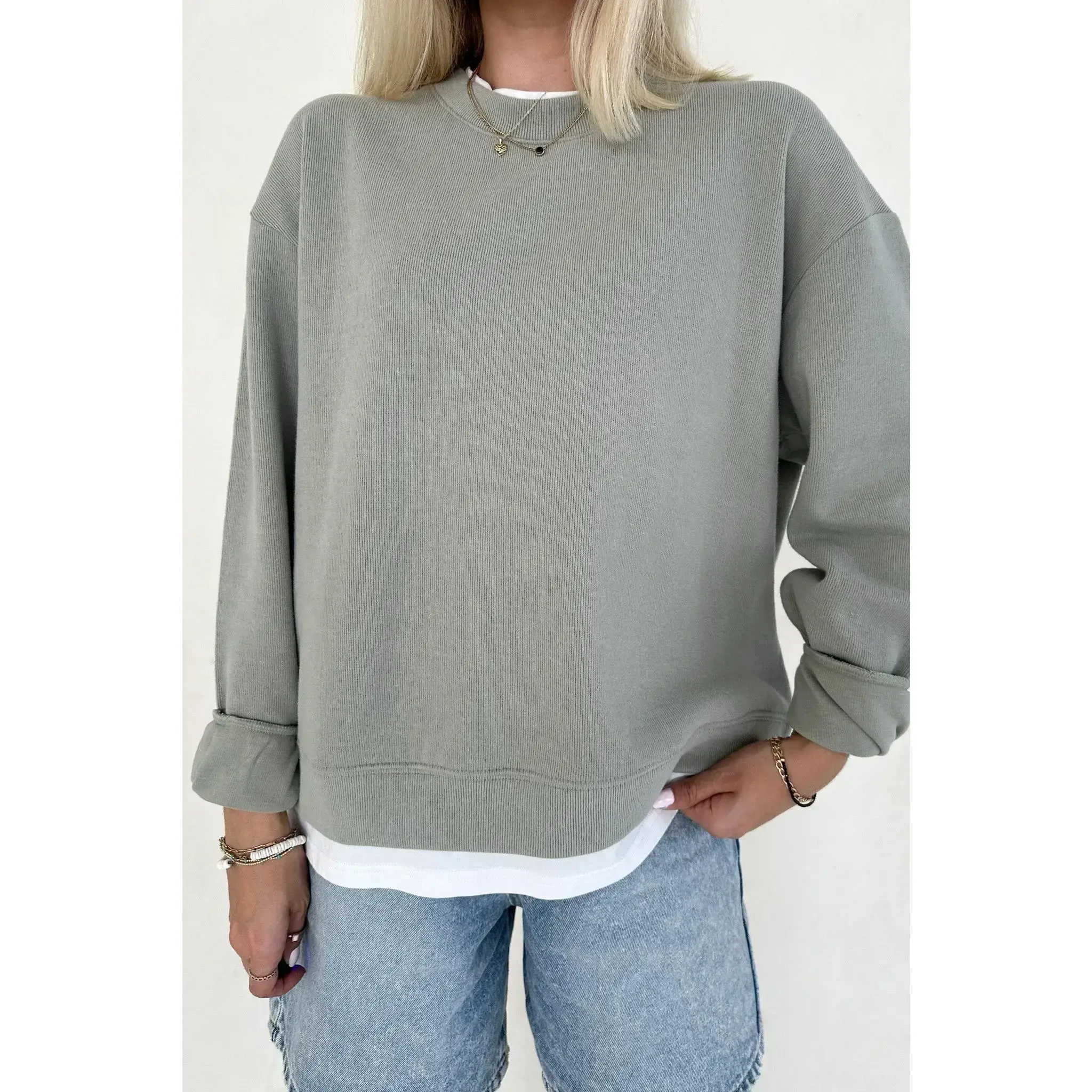 The Sophie Crew Twofer Pullover in Sage is a beautiful top with a layered look and a classic silhouette! Featuring a lightweight feel, sage and white colors, boyfriend silhouette, tee layered contrast details, soft knit fabric and a slouchy fit. Style this beautiful sweater over jeans or trousers! Details & Sizing