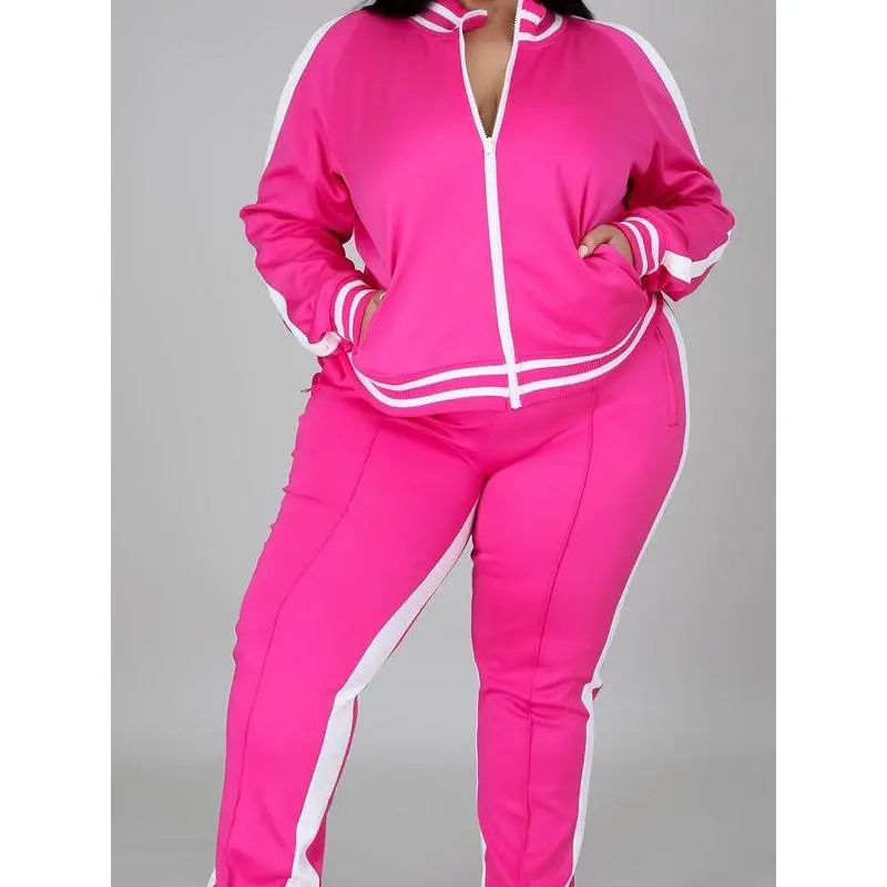 【Slant Pockets】: Convenient pockets allow you to store your essentials while on the go. 【High Waist Pants】: The high waist design accentuates your figure and provides a flattering fit. 【Striped Pattern】: The classic striped print gives the set a fashionable look that never goes out of style. 【Versatile Seasonal Wear】: Designed for fall & winter, this sporty casual two-piece set is perfect for a variety of occasions, from daily outdoor activities to sporty casual events, keeping you stylish and comfortable. 【Inclusive Sizing & Fit】: Available in sizes 0XL to 5XL and featuring a high waist design, this sportswear set caters to a wide range of body types, ensuring a flattering fit for plus-size individuals.