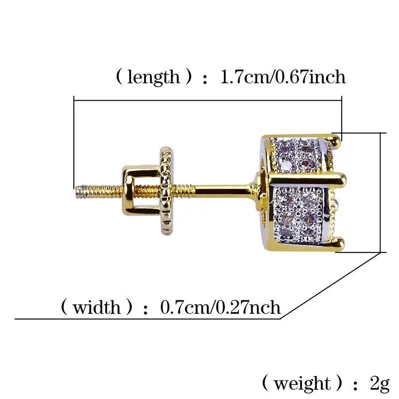 7MM CZ ROUND SCREW BACK STUD EARRINGS FOR MEN WOMEN Jewelry