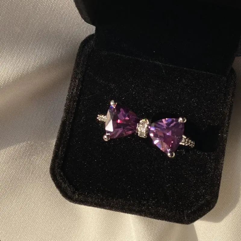 Bright little Princess Pink Treasure gift Ring Color Treasure Zirconium girls can love open ring