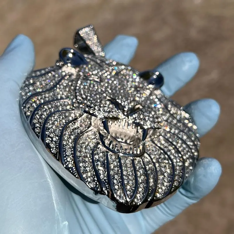 MEN'S JUMBO SIZE LION HEAD HIP HOP ICED GOLD SILVER PLATED CUBIC ZIRCONIA BLING CHARM PENDANT JEWELRY
