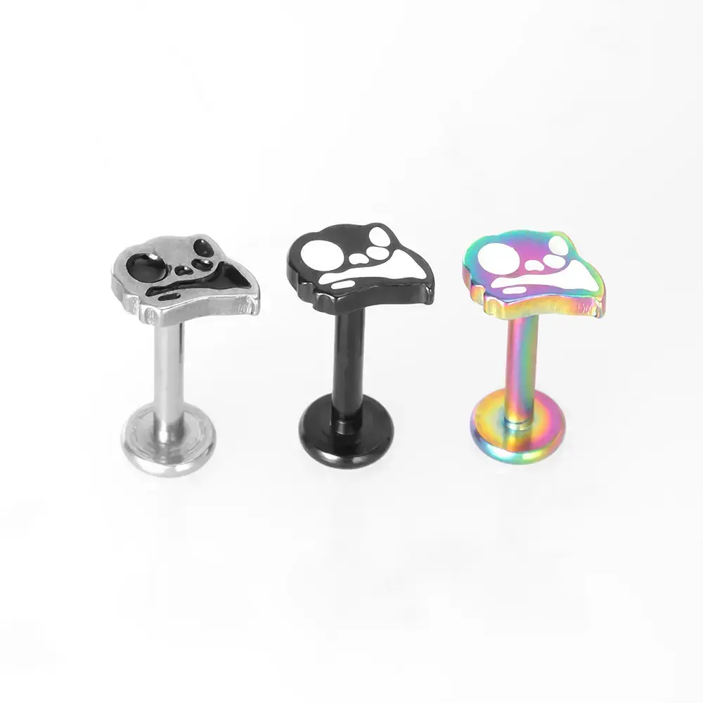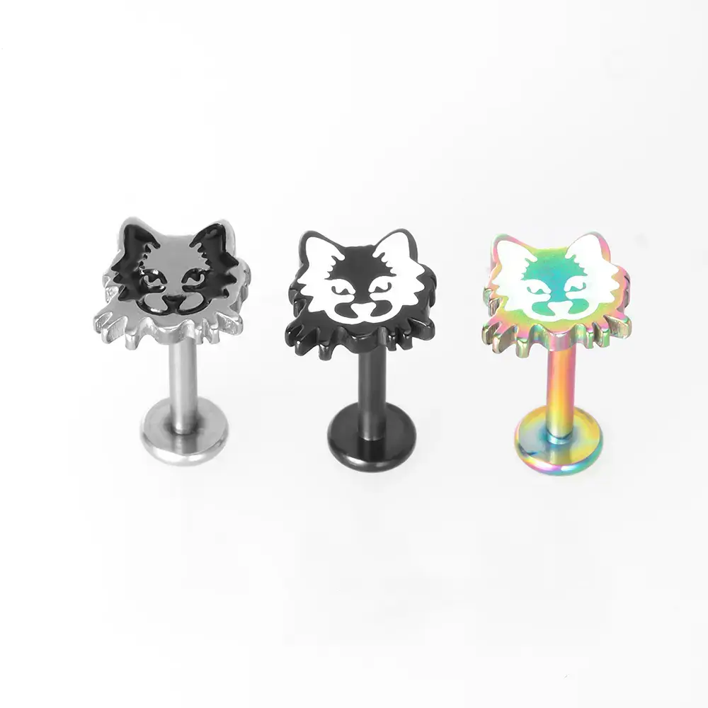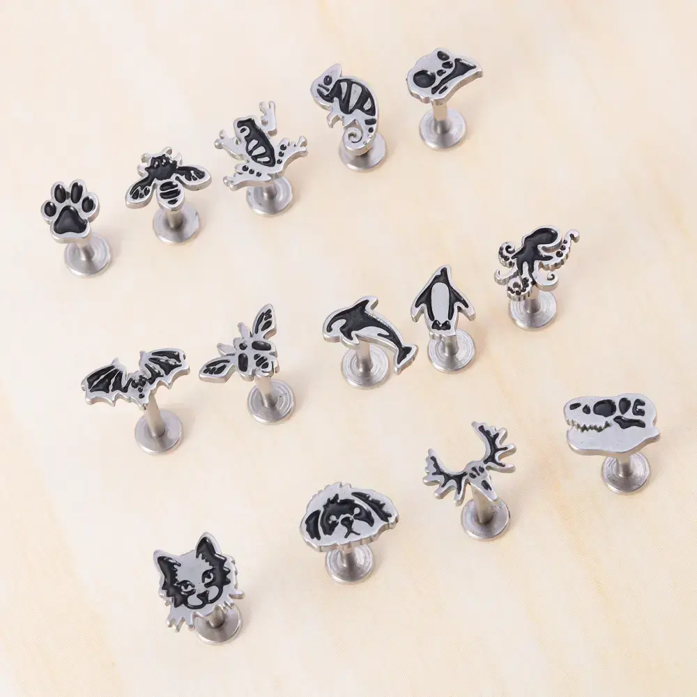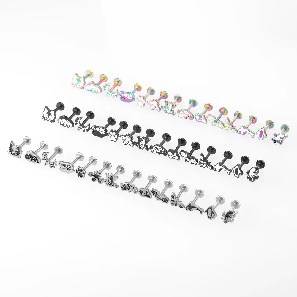 Stainless Steel Fashion Flat Bottom Animal Combination Lip Stud 3 Color Earbone Stud Versatile Earrings