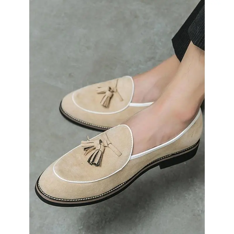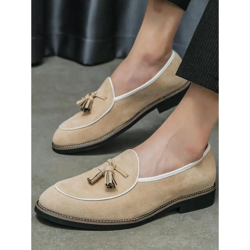 Men'sMinimalistTemperamentSolidColorTasselDecorLoafers,FashionableCasualComfortableLoafersforDailyWear,LightweightBreathableShoesforAllSeasons