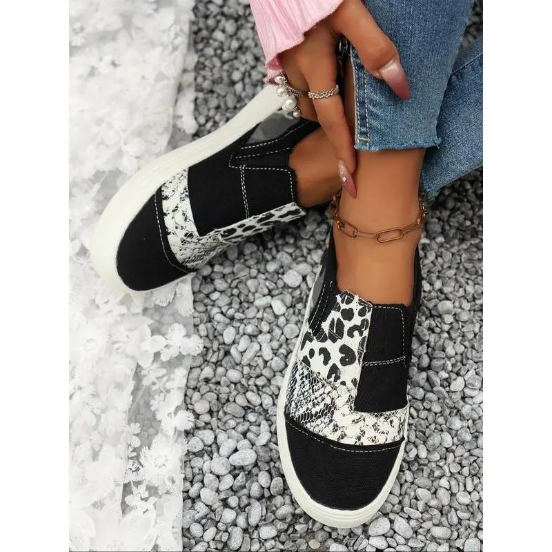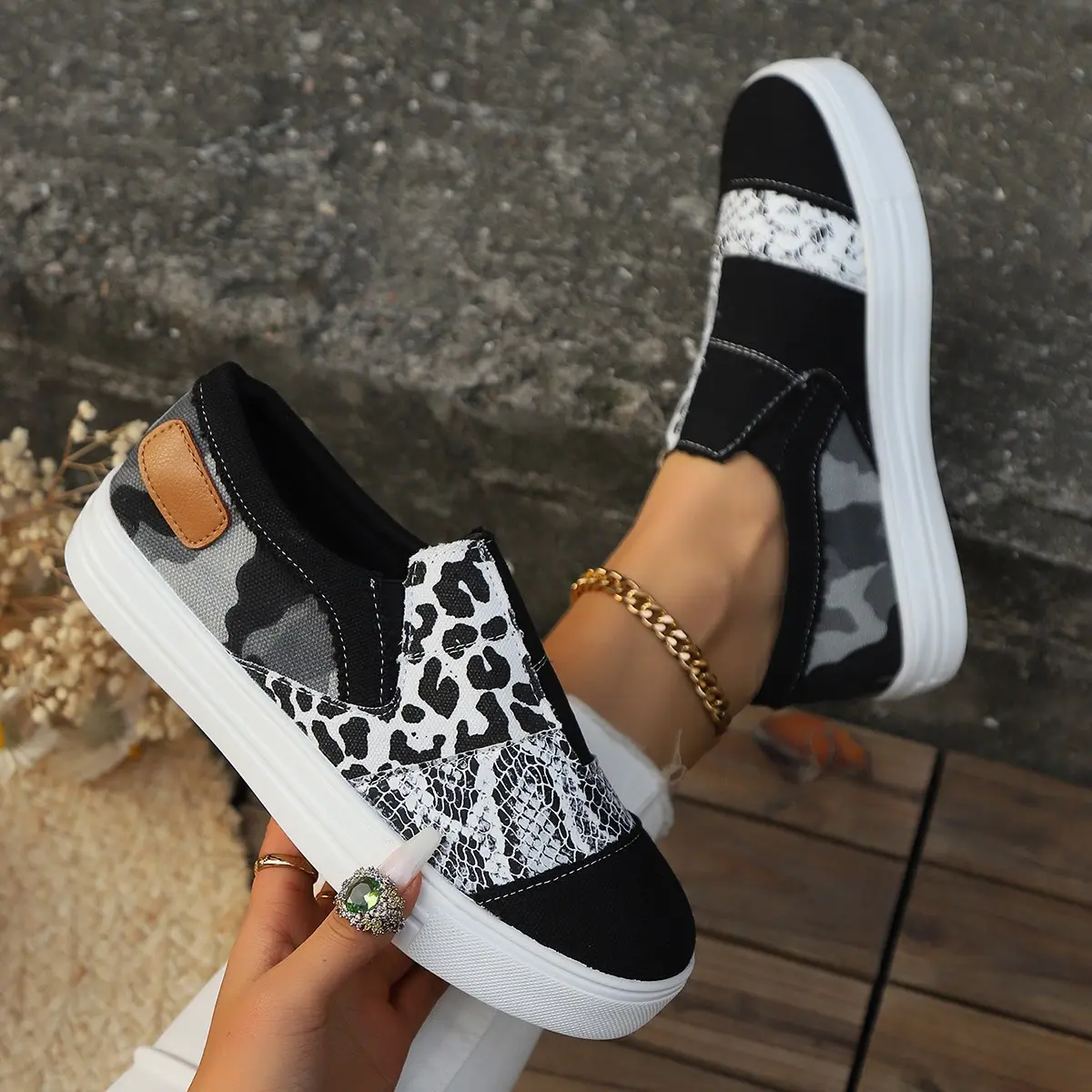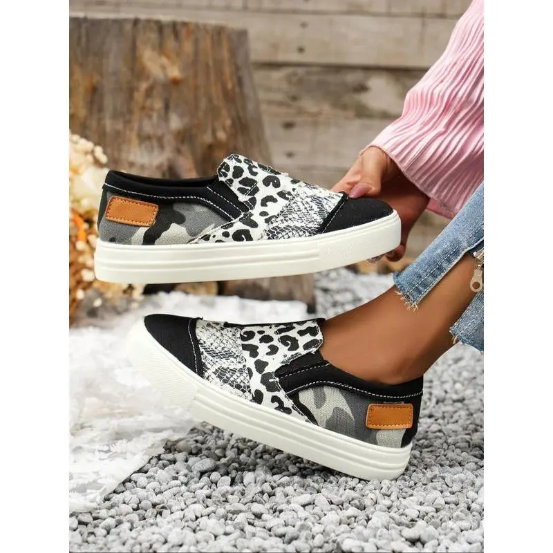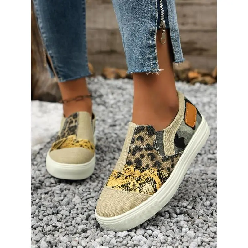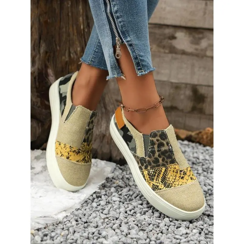 Women's Fashionable Leopard & Snakeskin Print Slip on Sneakers, Casual Comfortable Lightweight Sports Shoes, Female All-match Round Toe Shoes for Daily Wear