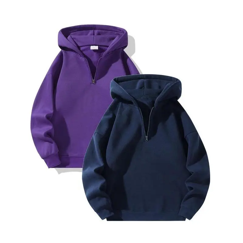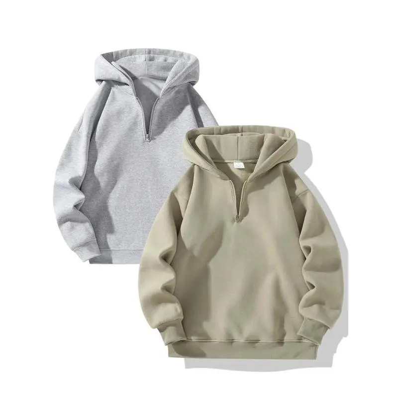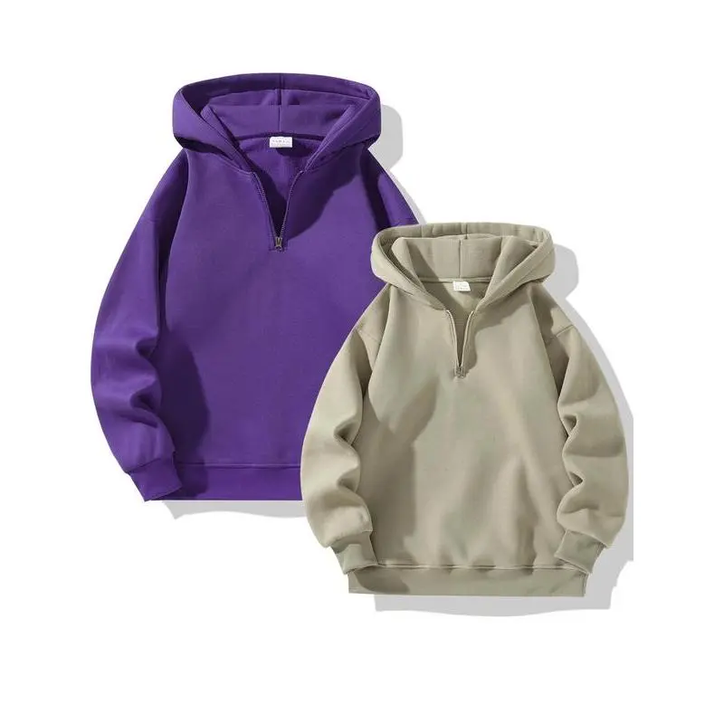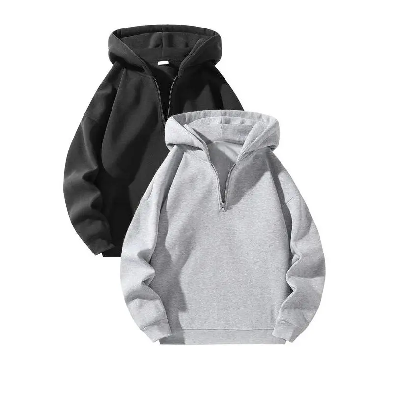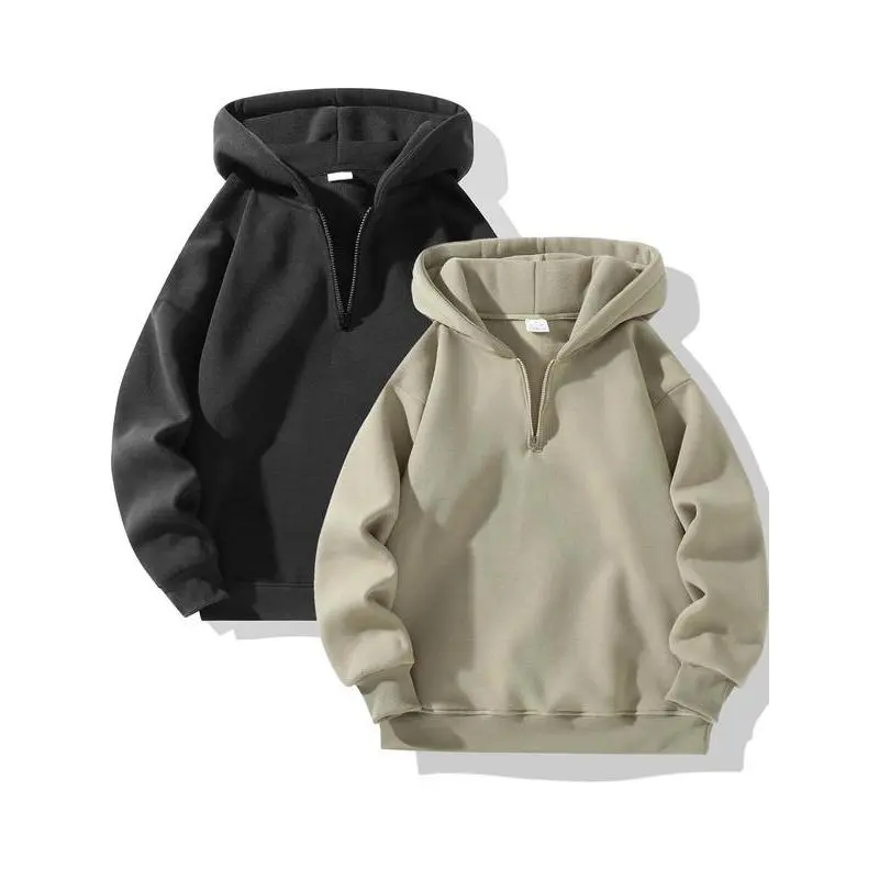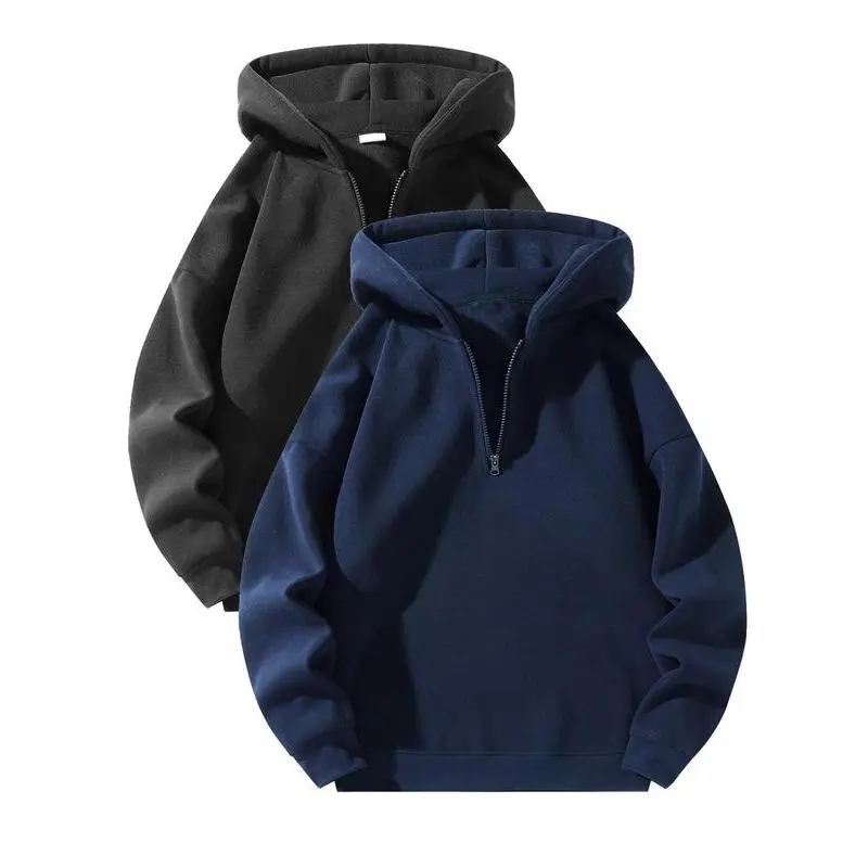 Men's Plain Half Zip Up Thermal Lined Longsleeves Hoodie, Hoodies for Men, Regular Fit Casual Cozy Fashion Warm Drop Shoulder Long Sleeve Hooded Sweatshirt for Fall & Winter, Mens Clothing, Hoodies for Men, Menswear, Cute Hoodies