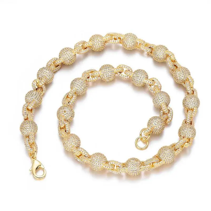 Hip Hop Jewelry 10.5MM Necklace Chain For Women Accessories Iced Out Chain Micro Pave Cz Jewelry Big Round Bead Choker gldmen'schain