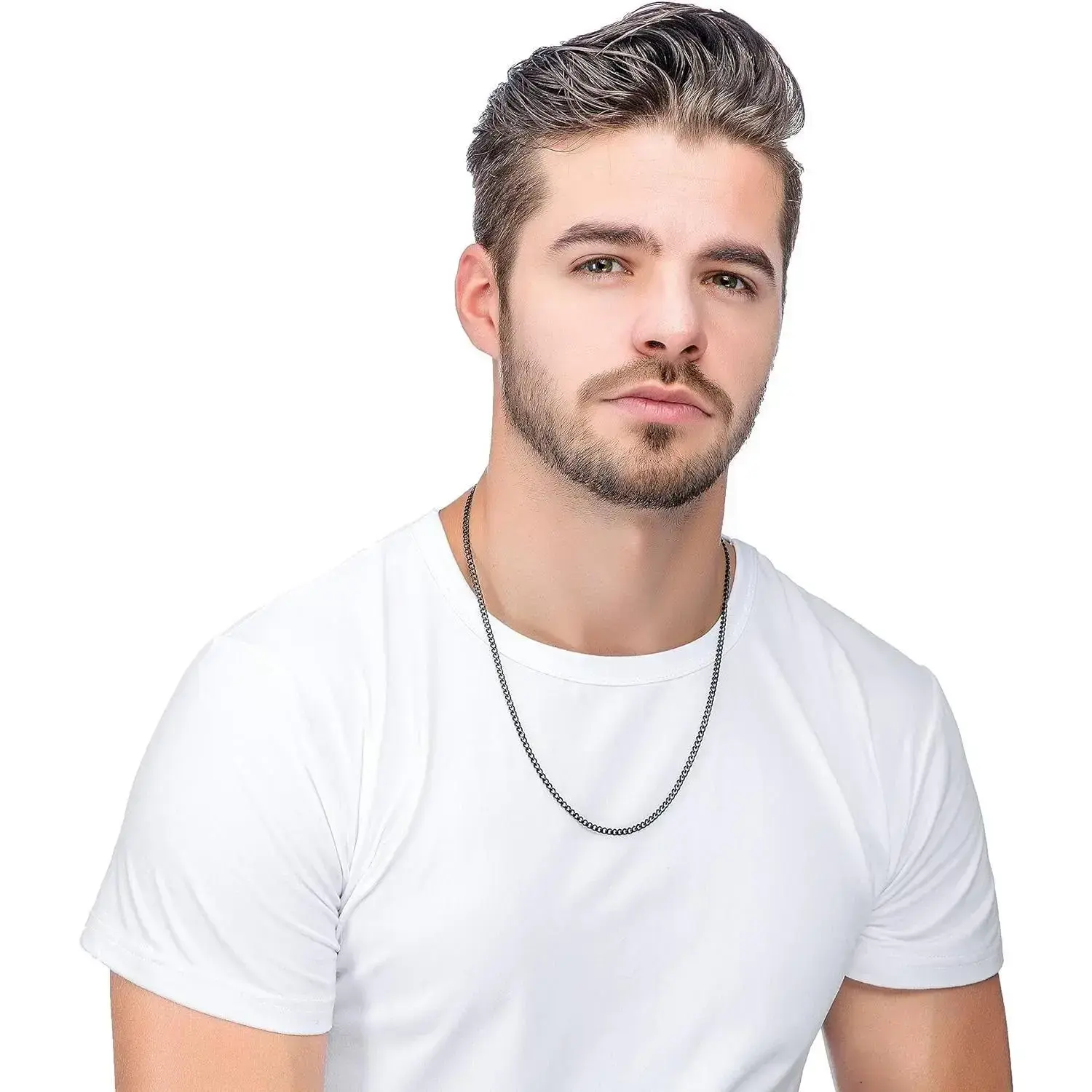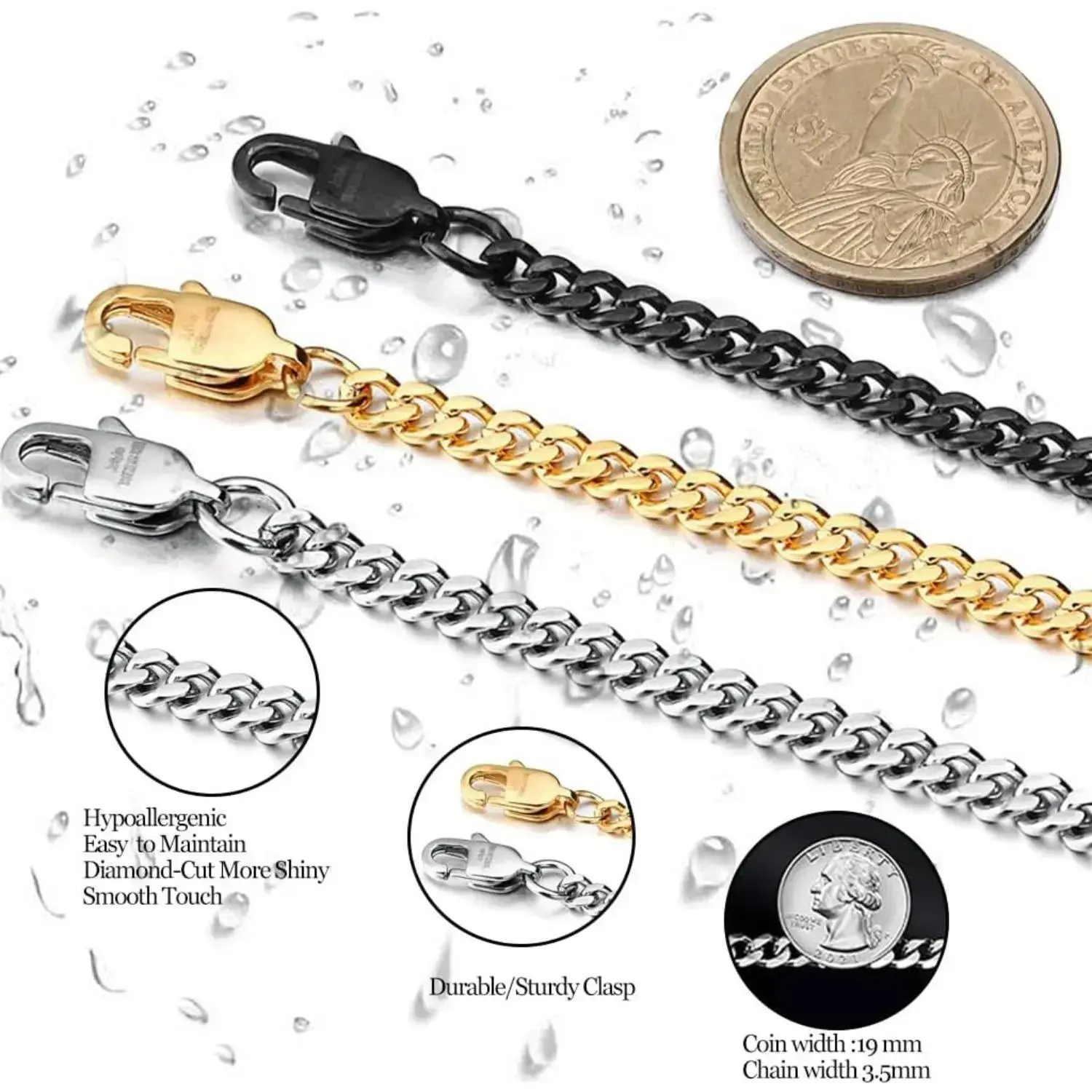 Cuban Chain Necklace Men's and Women's Black Silver Necklace Men's 16/18/20/22/24/30 Inch Chain Optional