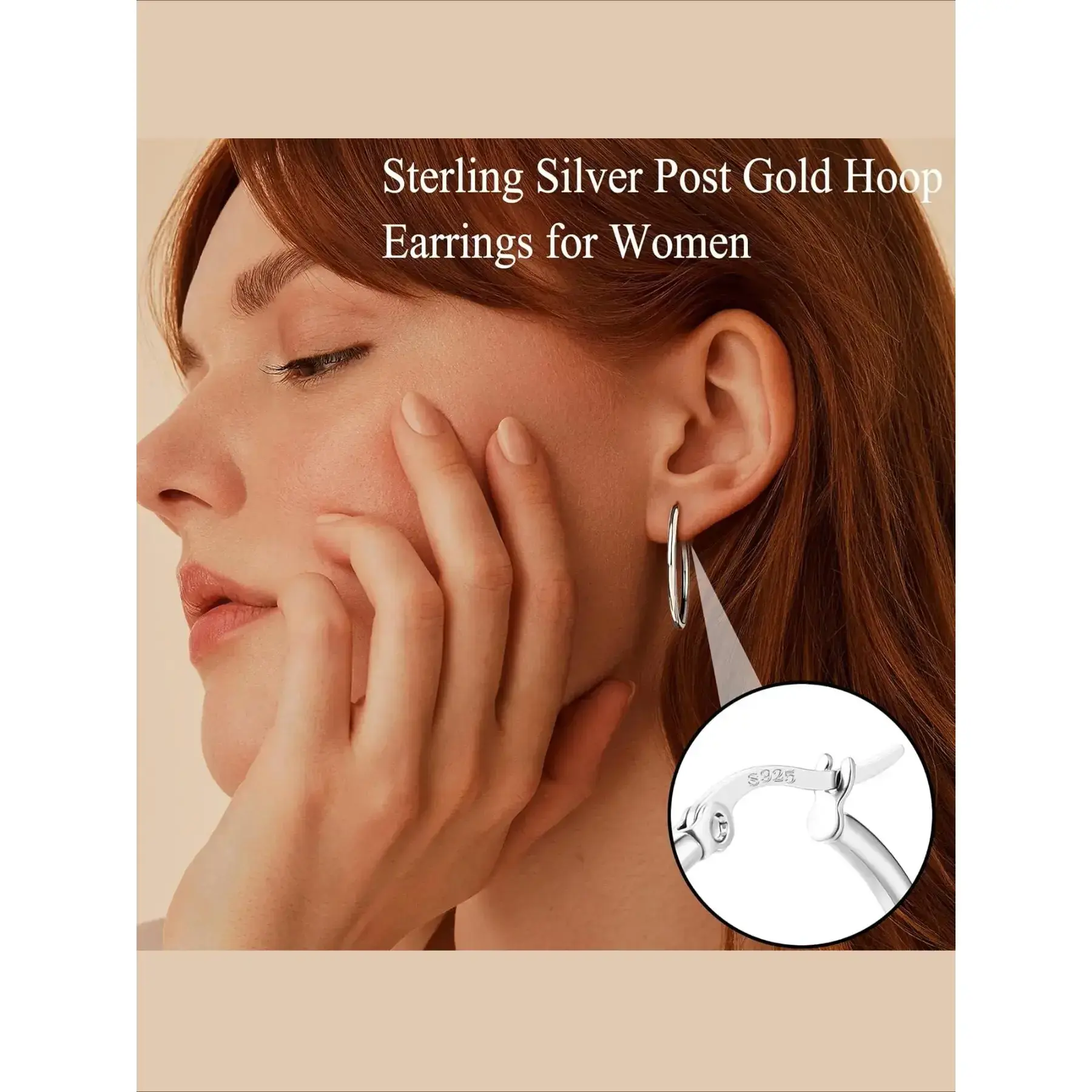 PAVOI 14K Gold Plated 925 Sterling Silver Post Lightweight Hoops | 20mm - 30mm Earring | Gold Hoop Earrings for Women