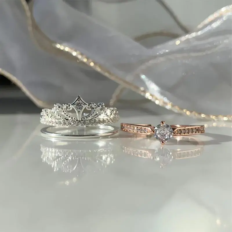 Fashion Couple Engagement Ring Suit Women's Wedding Stainless Steel Ring Men's Valentine's Day Gift