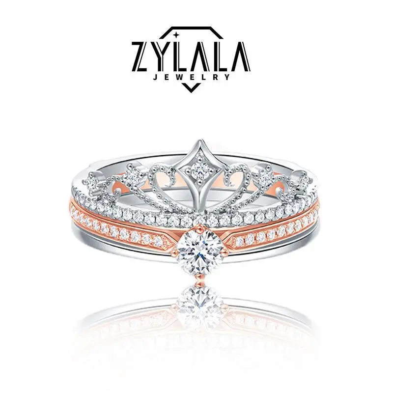 [211] 2in1 Design Synthetic Moissanite Ring Princess Design 925 Sterling Silver Promise Ring Engagement Wedding Gift