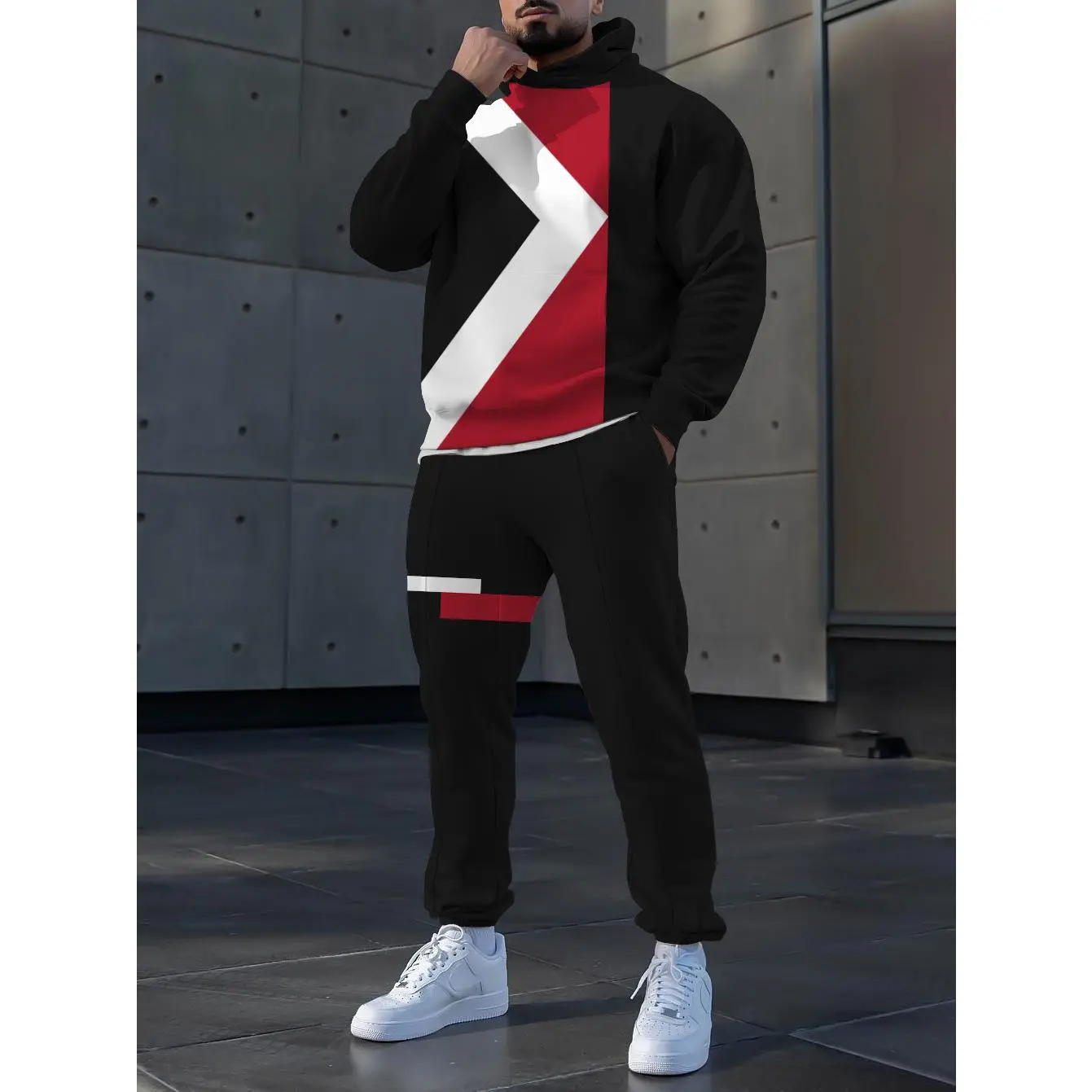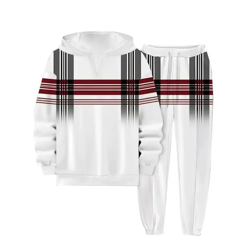 2-piece Men's Casual Suit 3D Digital Printing Hoodie Suit Long-sleeved Sweatshirt + Pants Suit Men's Sports Suit